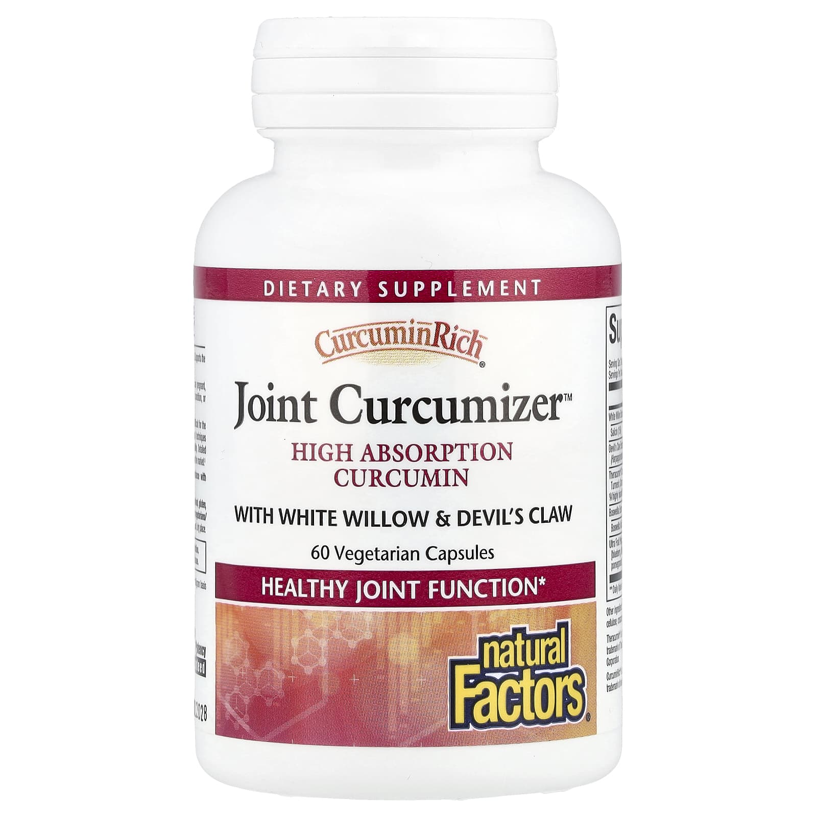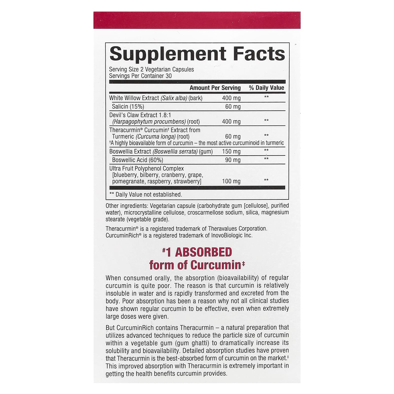 Joint Curcumizer сочетает в себе Theracurmin с мощными экстрактами-добавками — ивой серебристой, лютиком полевым, босвеллией и ультрафруктовым комплексом полифенолов, которые: