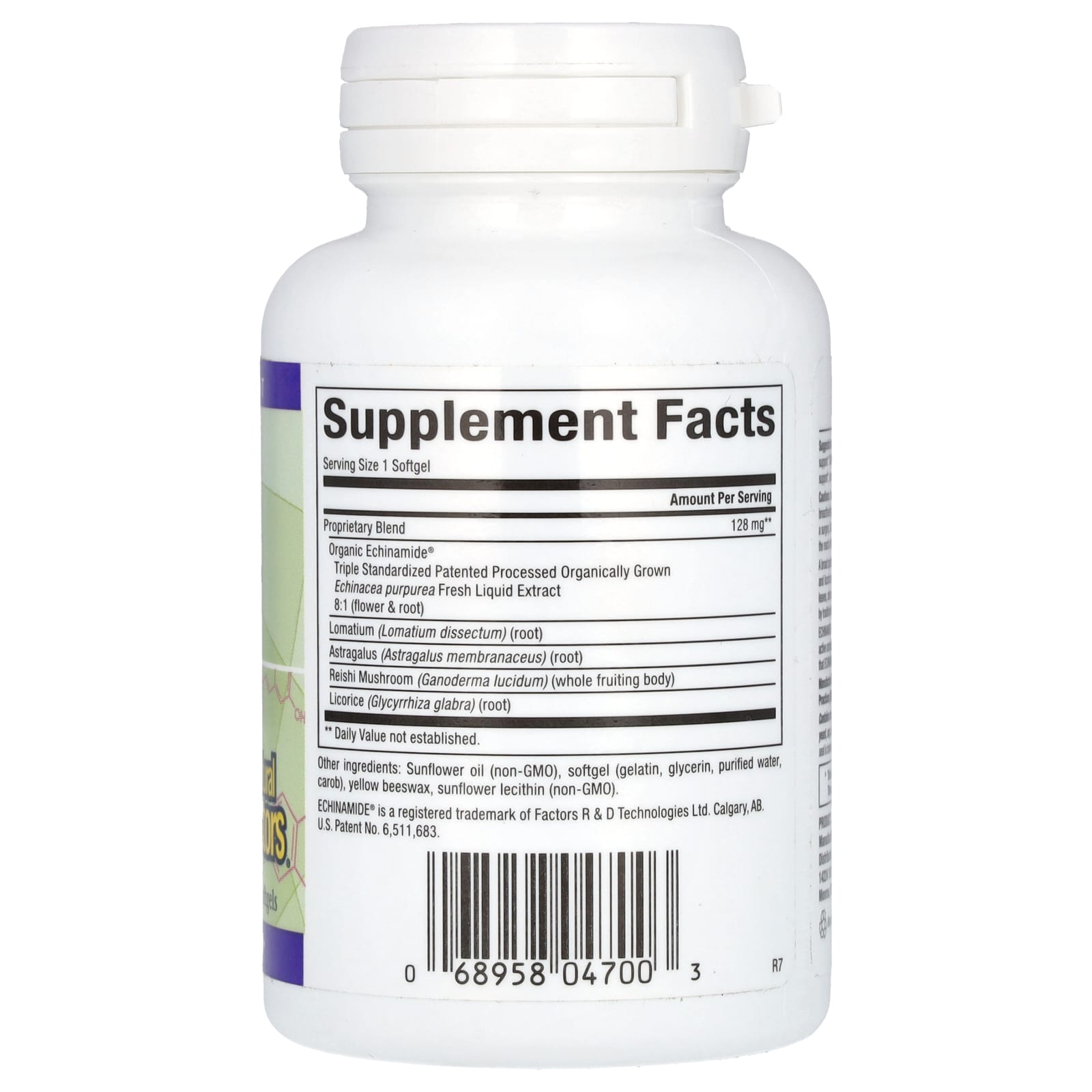 Формула для поддержки иммунитета широкого спектра действия содержит экстракты эхинамида, астрагала, рейши, горечника и солодки. Эхинамид производится из свежих цветков, листьев, стеблей и корней органической эхинацеи пурпурной (Echinacea purpurea), собранных вручную на наших фермах в канадском регионе Оканаган. Эхинацея широко используется традиционными травниками для поддержки здоровой иммунной функции и общего состояния здоровья.