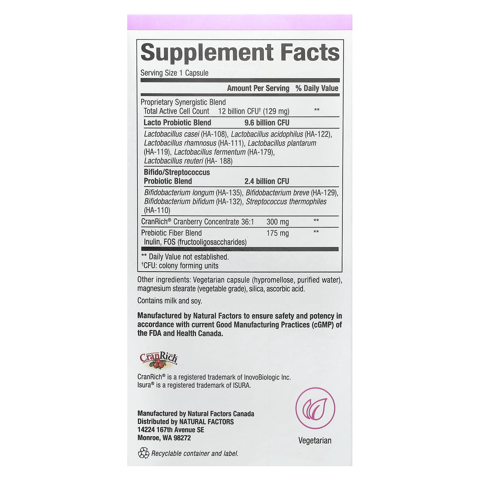 Изготовлено компанией Natural Factors с гарантией безопасности и эффективности в соответствии со стандартами надлежащей производственной практики (GMP), разработанными Управлением по санитарному надзору за качеством пищевых продуктов и медикаментов (FDA) США и Министерством здравоохранения Канады.