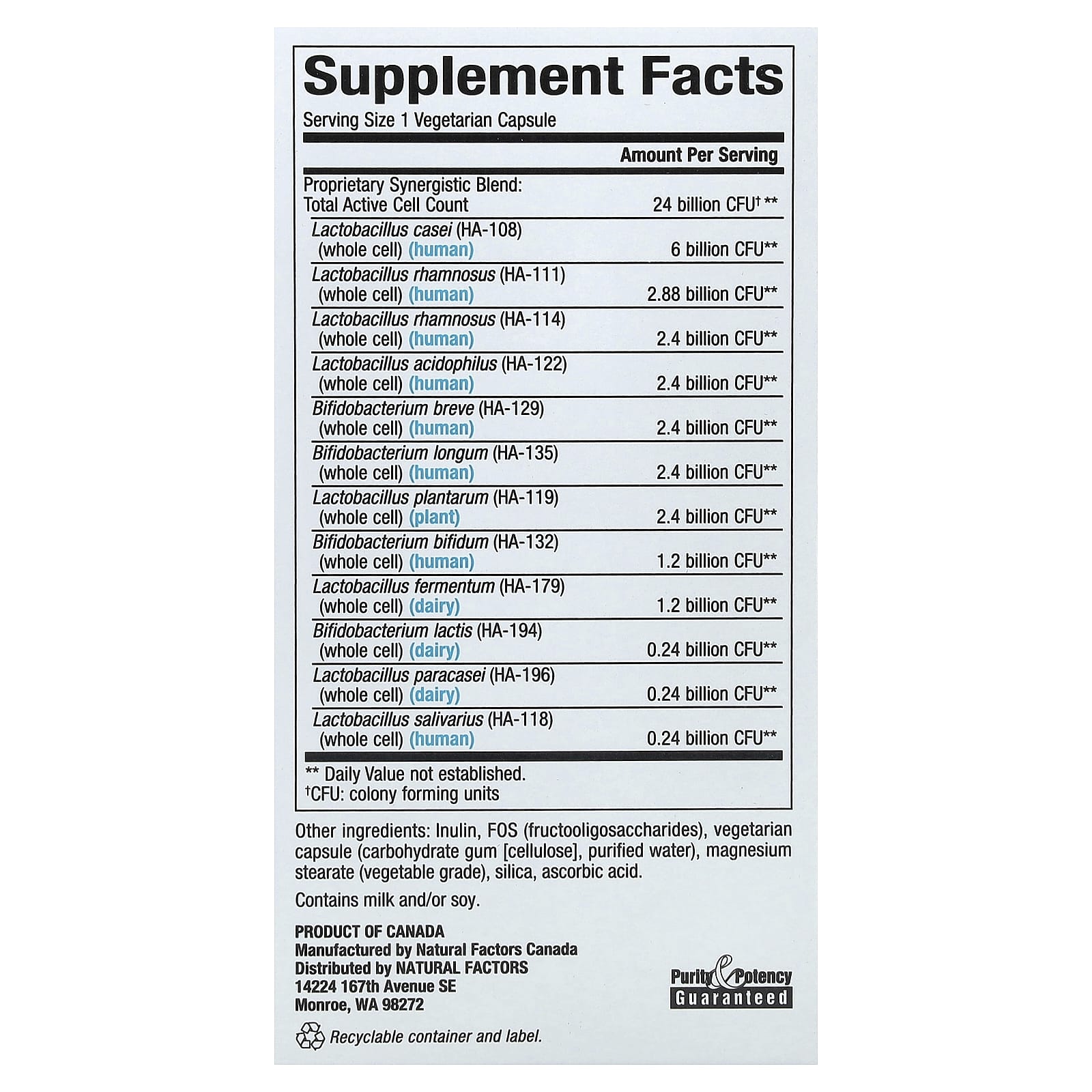Не для всех штаммов пробиотиков требуется кишечнорастворимая оболочка. Что касается стабильности желудочного сока, то не все штаммы одинаковы. Natural Factors тщательно отбирает штаммы, устойчивые к воздействию кислоты, чтобы их можно было употреблять в любое время, независимо от приема пищи, и они безопасно доставляются в кишечник без повреждений. Наши штаммы проверяются на жизнеспособность в желудке, чтобы обеспечить оптимальное усвоение и эффективность.