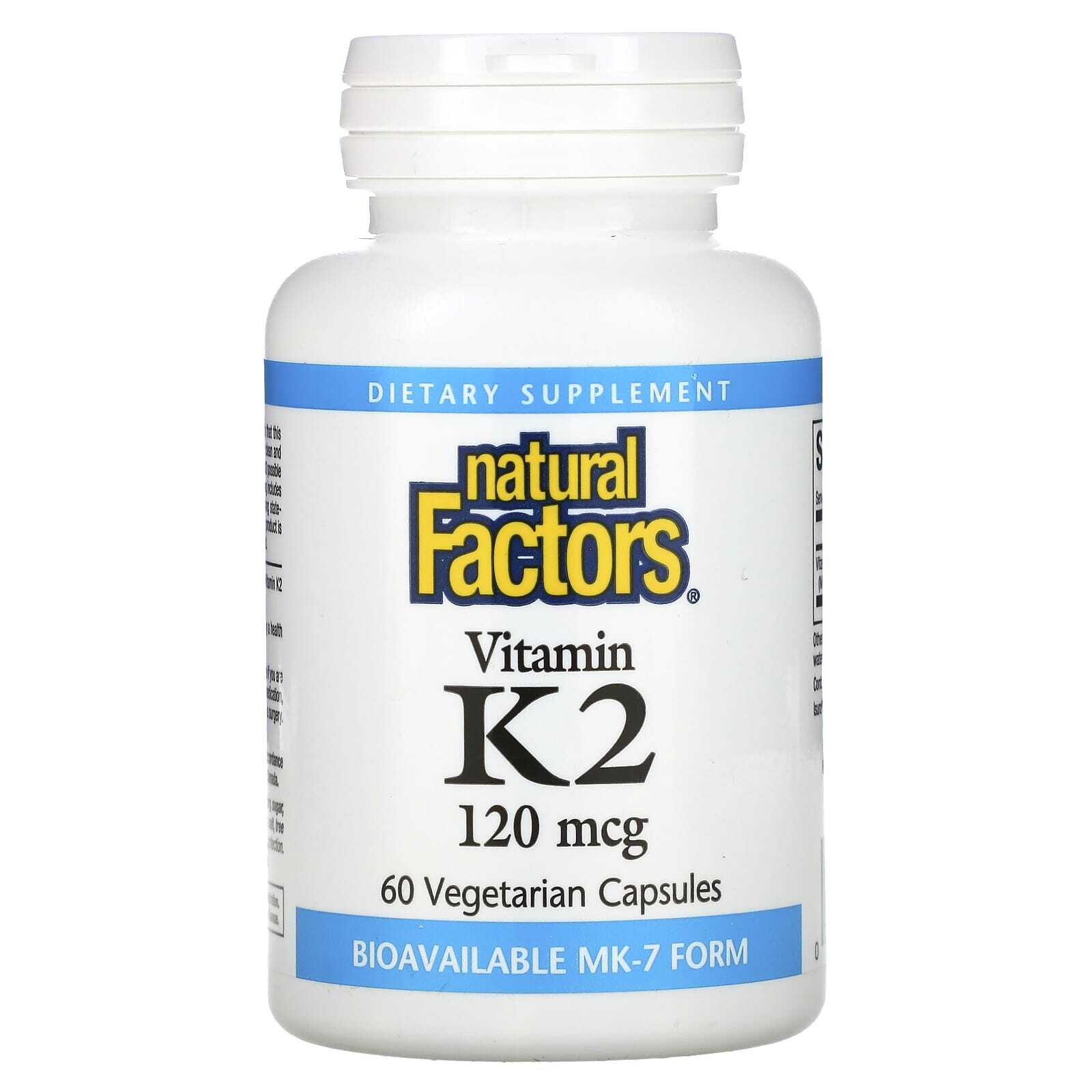 Витамин K2 поддерживает здоровье костей и сосудистой системы. Витамин K2 от Natural Factors содержит биологически активную и высокобиодоступную форму МК-7.
