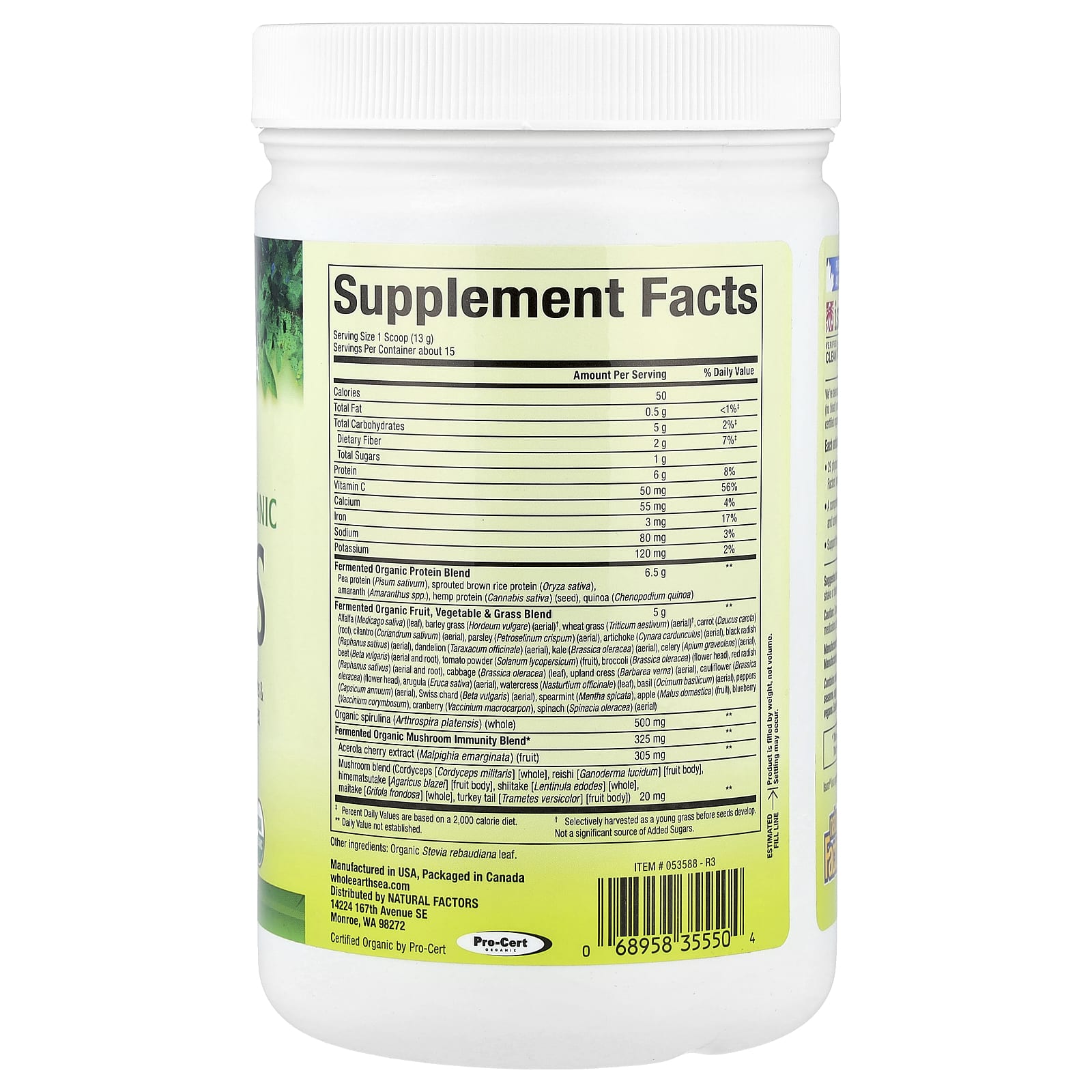 Порошок из чистых пищевых продуктов, богатых питательными веществами, на 100% натуральный, упаковано и протестировано в США и Канаде.