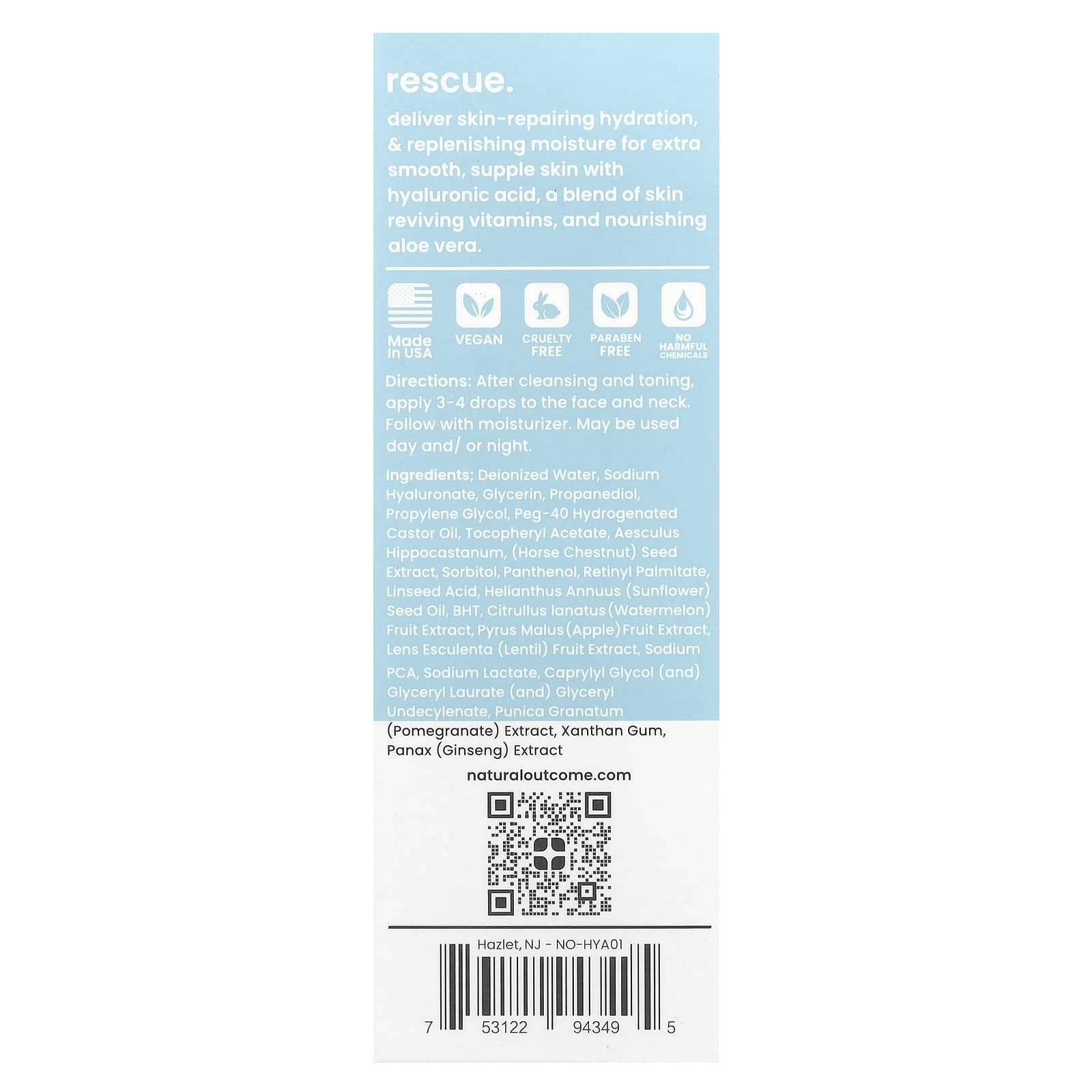Обеспечивает восстанавливающее увлажнение и восполнение влаги для более гладкой, эластичной кожи с гиалуроновой кислотой, смесью восстанавливающих кожу витаминов и питательного алоэ вера.