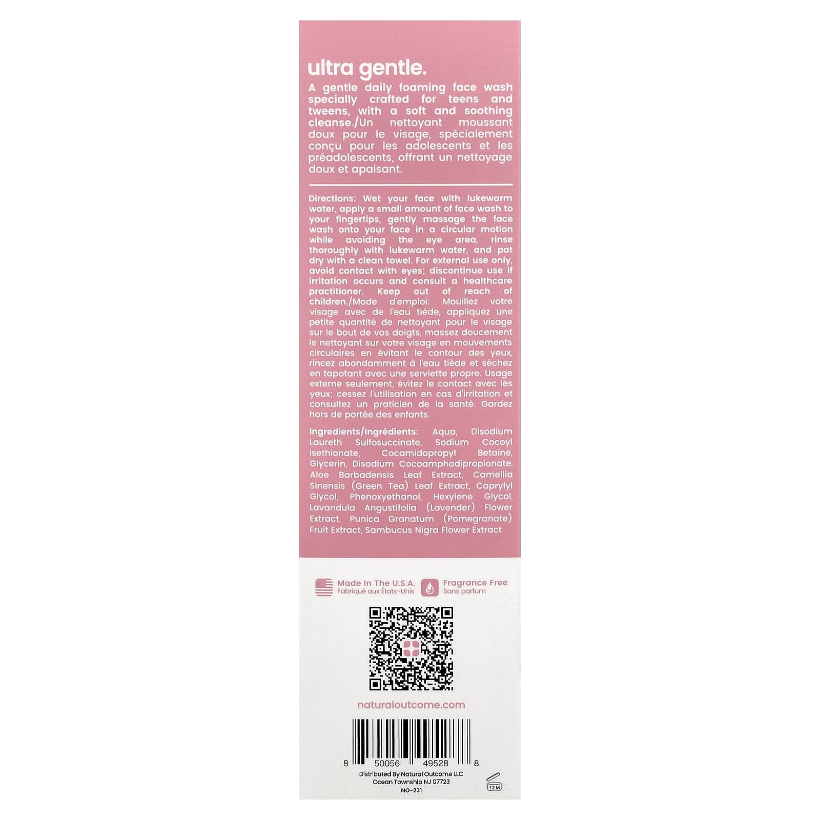 Вода, динатрия лаурет сульфосукцинат, кокоил изетионат натрия, кокамидопропилбетаин, глицерин, динатрия кокоамфодипропионат, экстракт листьев алоэ вера (Aloe barbadensis), экстракт листьев зеленого чая (Camellia sinensis), каприлилгликоль, феноксиэтанол, гексиленгликоль, экстракт цветков лаванды (Lavandula angustifolia), экстракт плодов граната (Punica granatum), экстракт цветков черной бузины (Sambucus nigra).
