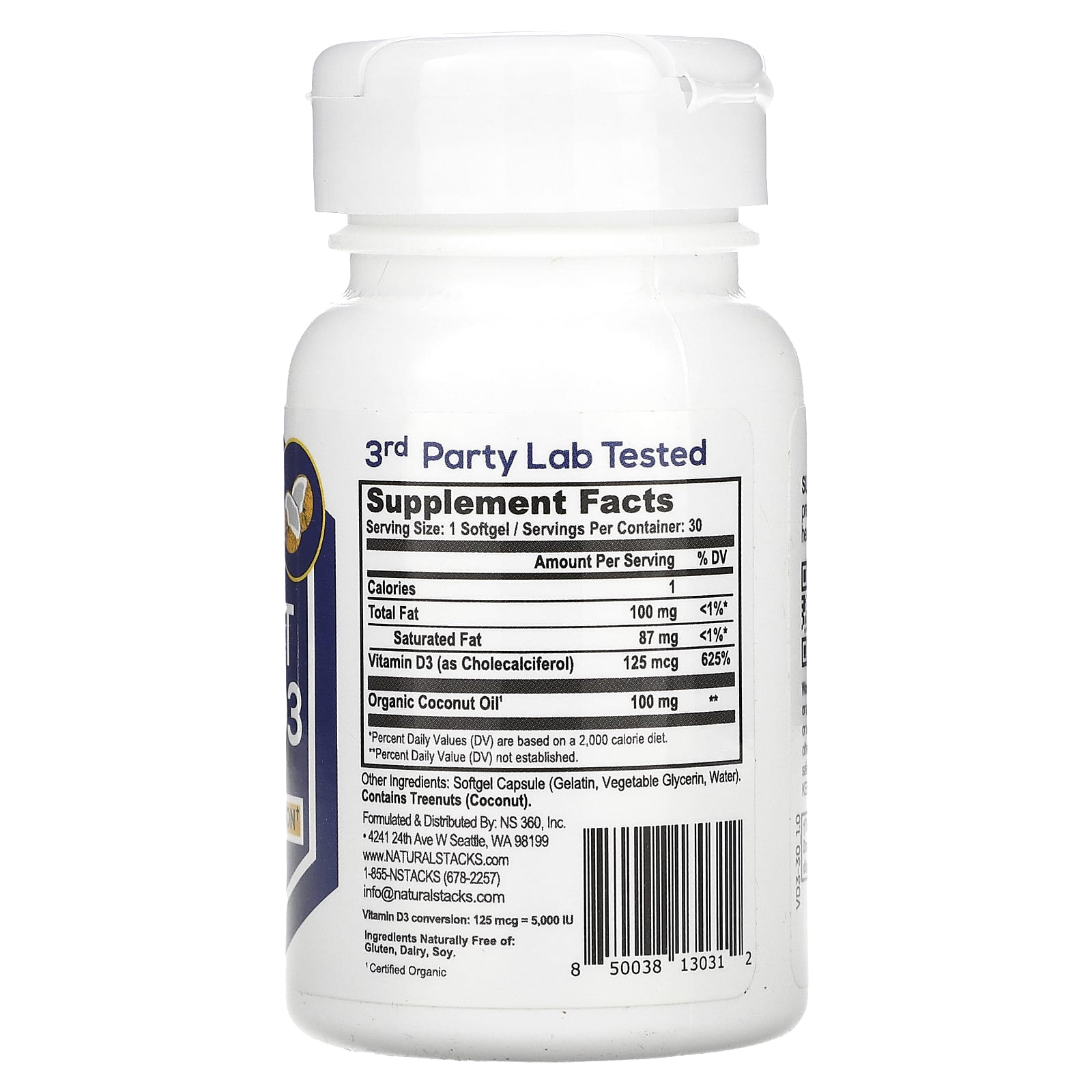 Витамин D3 лучше всего усваивается организмом вместе с насыщенными жирами. В состав Natural Stacks входит капсула с кокосовым маслом, чтобы витамин D3 попадал туда, куда нужно.