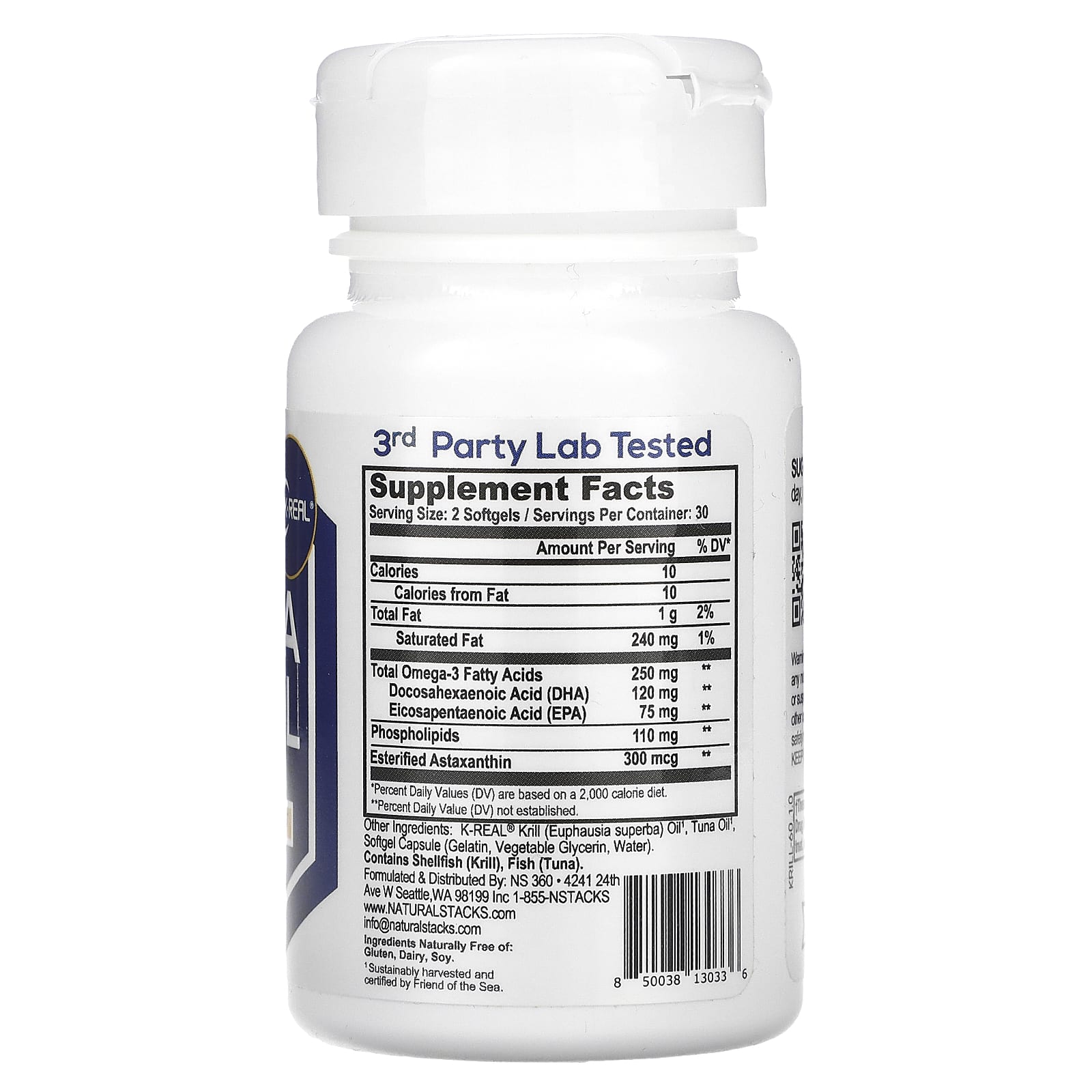 Масло криля (Euphausia superba) K-Real®1, тунцовое масло1, капсула (желатин, растительный глицерин, вода).