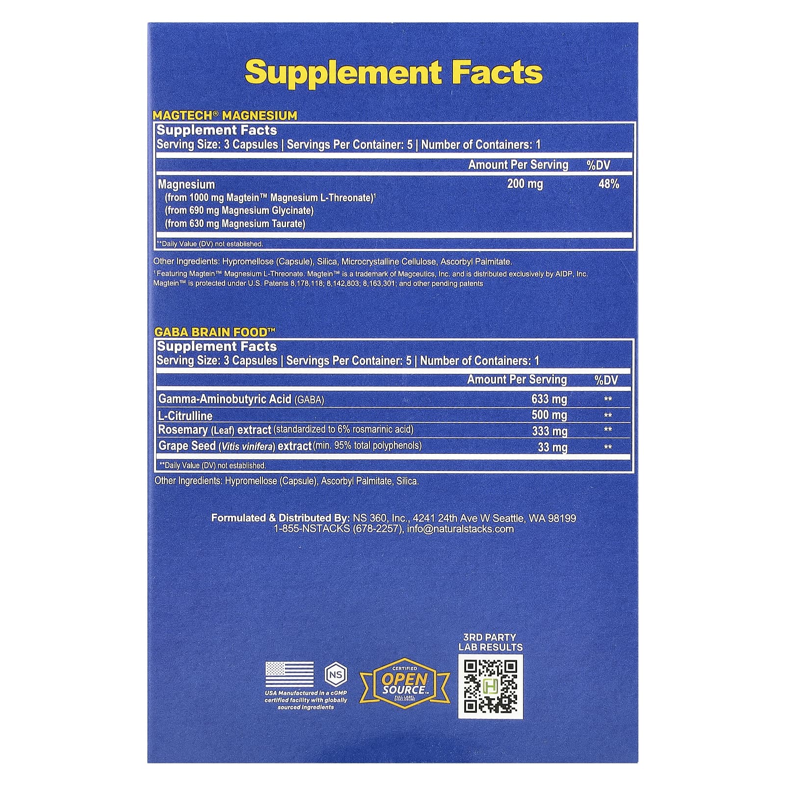 GABA Brain Food ™: Гипромеллоза (капсула), аскрилпальмитат, диоксид кремния.