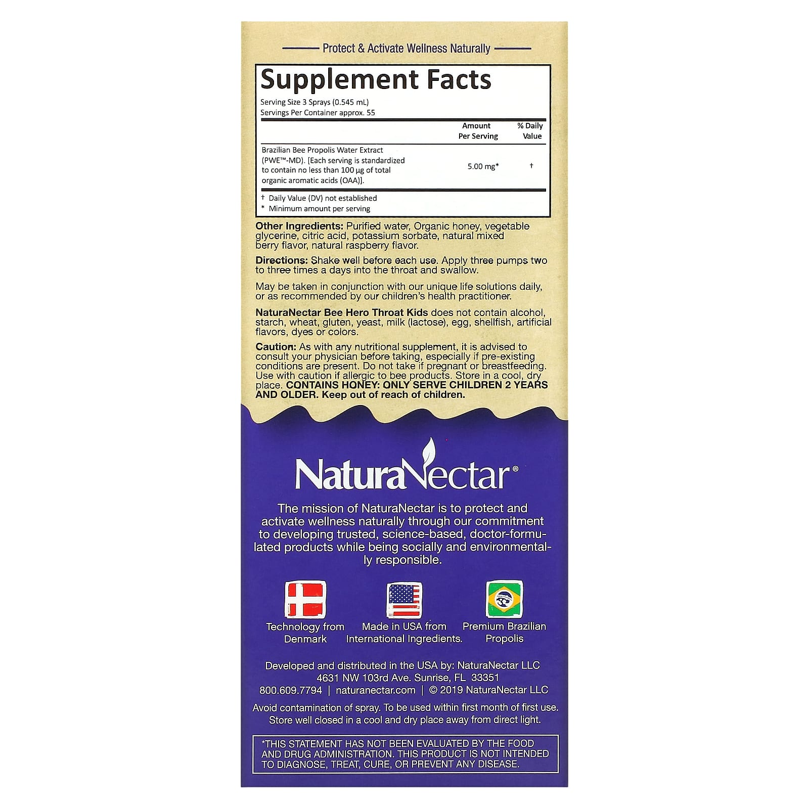 В NaturaNectar более десяти лет мы разрабатываем продукты, основанные на природе и науке улья, и мы черпаем в этом свое вдохновение. С тем же вниманием и преданностью пчел, которые строят устойчивые и продуктивные ульи с их прополисом, NaturaNectar расширяет свою линейку продуктов, чтобы оказать положительное влияние на здоровье детей от 2 лет и старше. NaturaNectar Bee Hero Throat Kids может поддерживать иммунную и респираторную систему ваших детей и быть идеальным ежедневным компаньоном для образованных родителей, которые хотят давать своим детям только лучшие натуральные продукты.