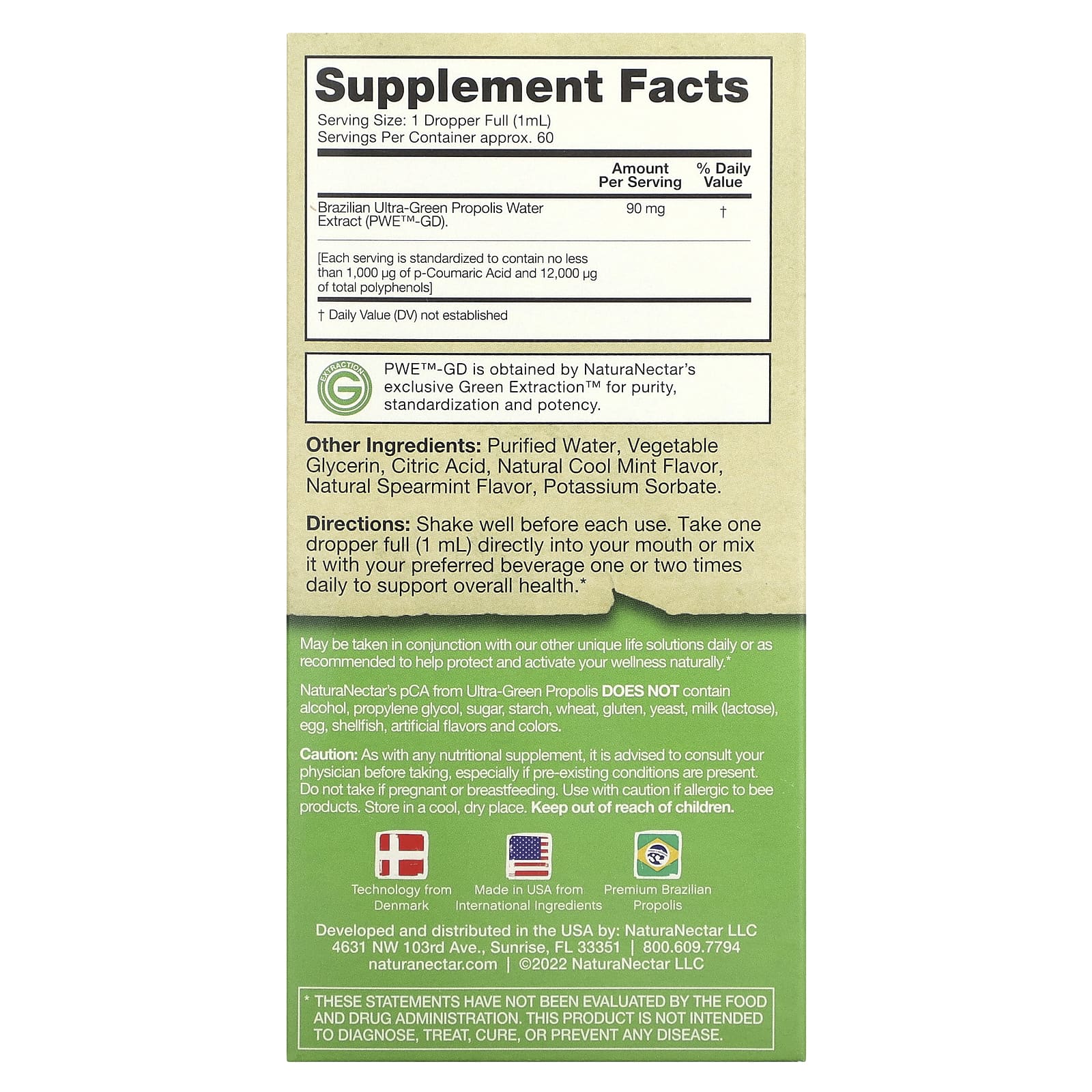 ПКА NaturaNectar из ультра-зеленого прополиса не содержит спирта., пропиленгликоль, сахар, крахмала, пшеницы, глютена, дрожжей, молока (лактозы), яиц, моллюсков, искусственных ароматизаторов и красителей.