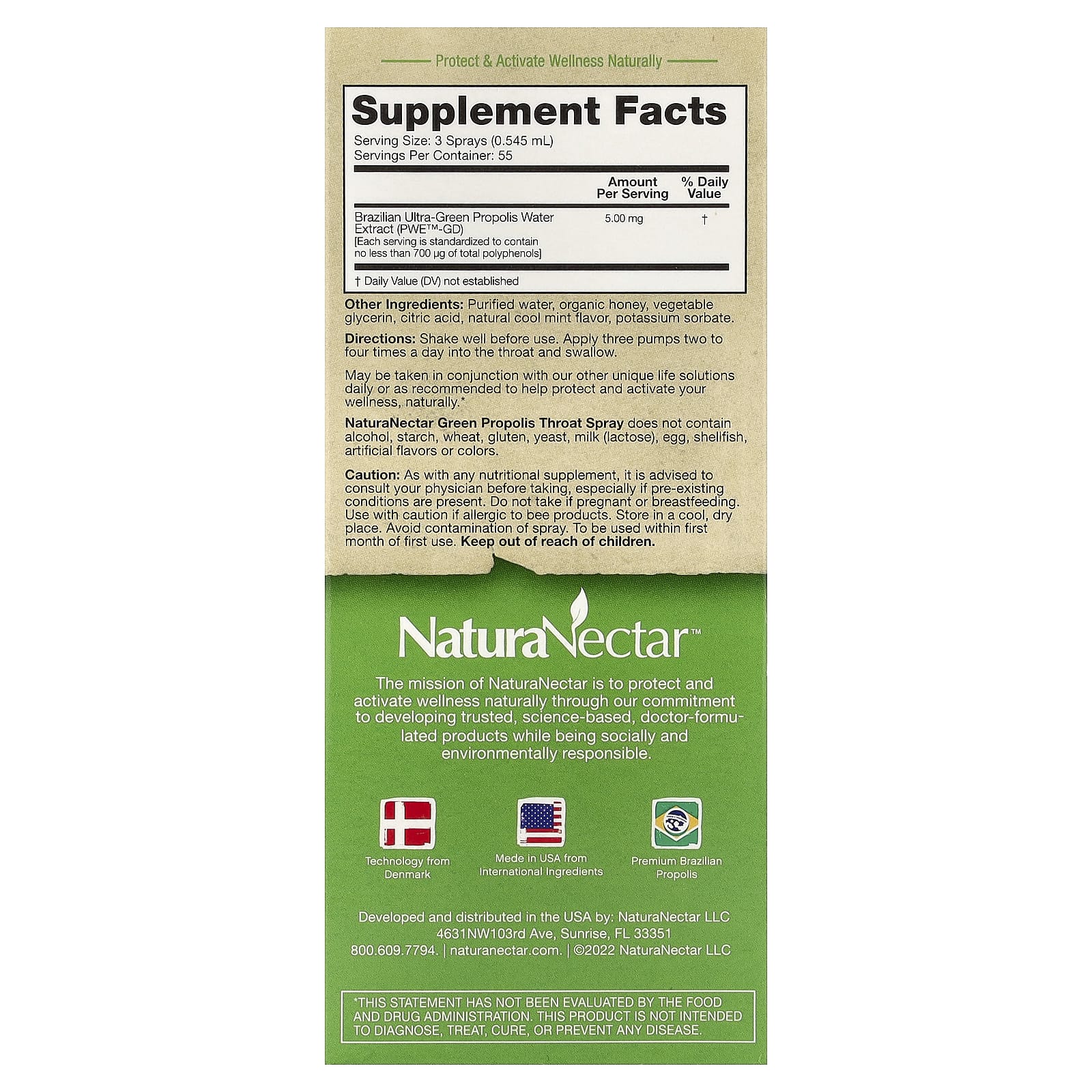 Спрей для горла с зеленым прополисом NaturaNectar не содержит спирта, крахмала, пшеница, клейковина, дрожжи, молока (лактозы), яйцо, моллюск, искусственных ароматизаторов и красителей.