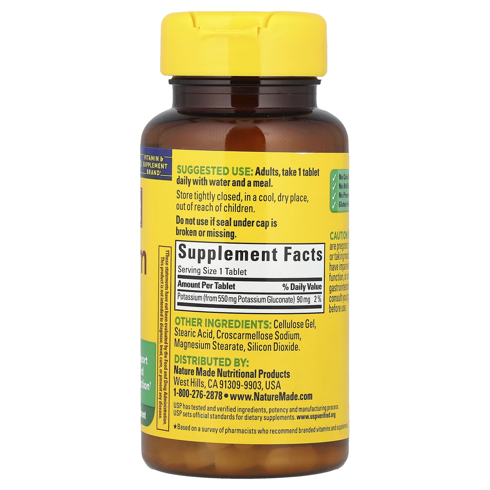 | Калий (из 550 мг глюконата калия) | 90 мг | 2% |