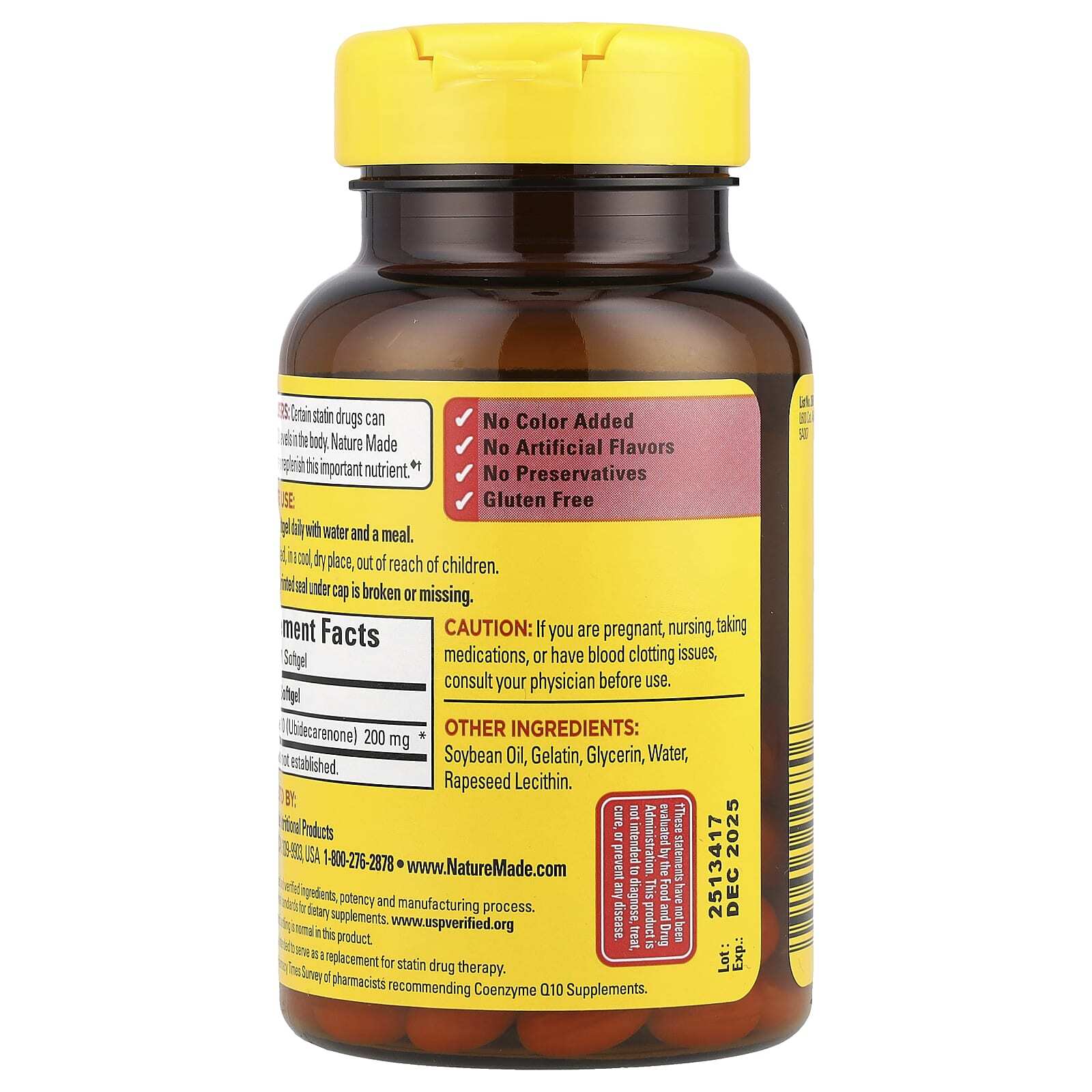 Nature Made, Коэнзим Q10, 200 мг, 80 мягких таблеток