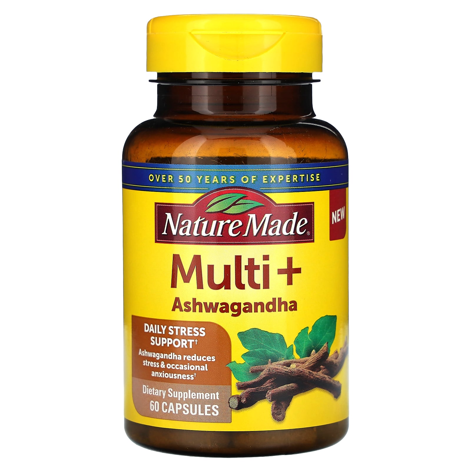 Получите больше из ваших мультивитаминов! Мультивитамины и ашваганда Nature Made® содержат 21 ключевое питательное вещество для ежедневной поддержки питания, а также ашваганду для снятия стресса.