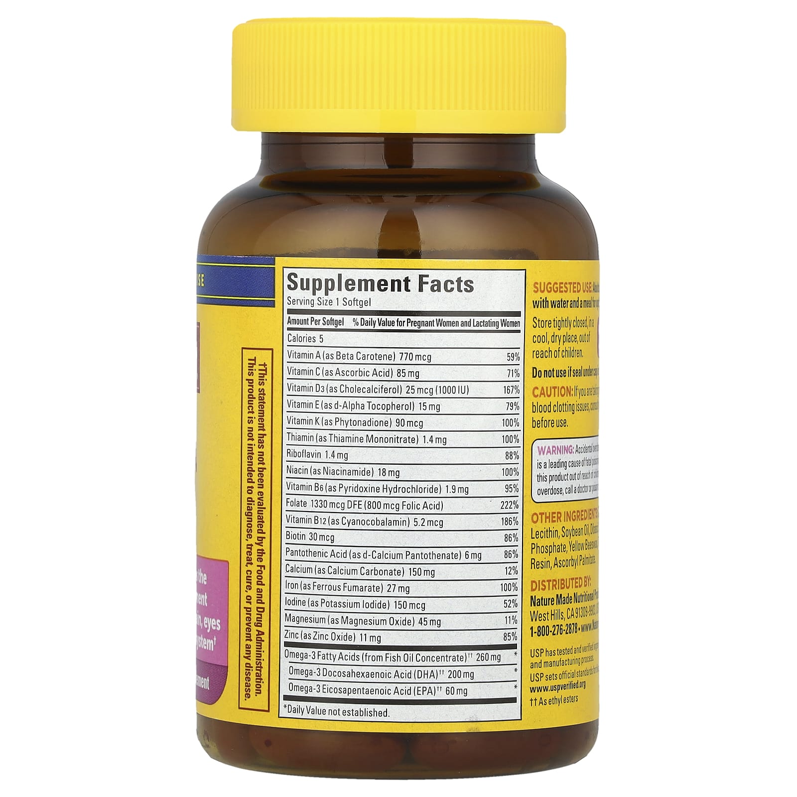 Добавление пренатальных мультивитаминов в утренний рацион может помочь удовлетворить ваши потребности в питании, а также обеспечить рост вашего ребенка. Пренатальные мягкие таблетки с фолиевой кислотой и ДГК от Nature Made специально разработаны для поддержки развития мозга, нервной системы, костей и глаз ребенка.