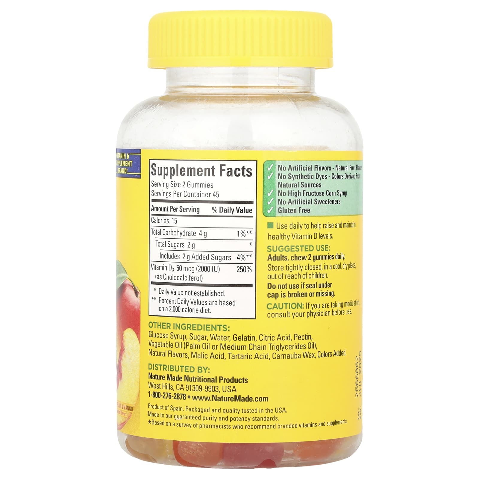 Витамин D3 (в виде холекальциферола) | 50 мкг (2000 МЕ) | 250% |