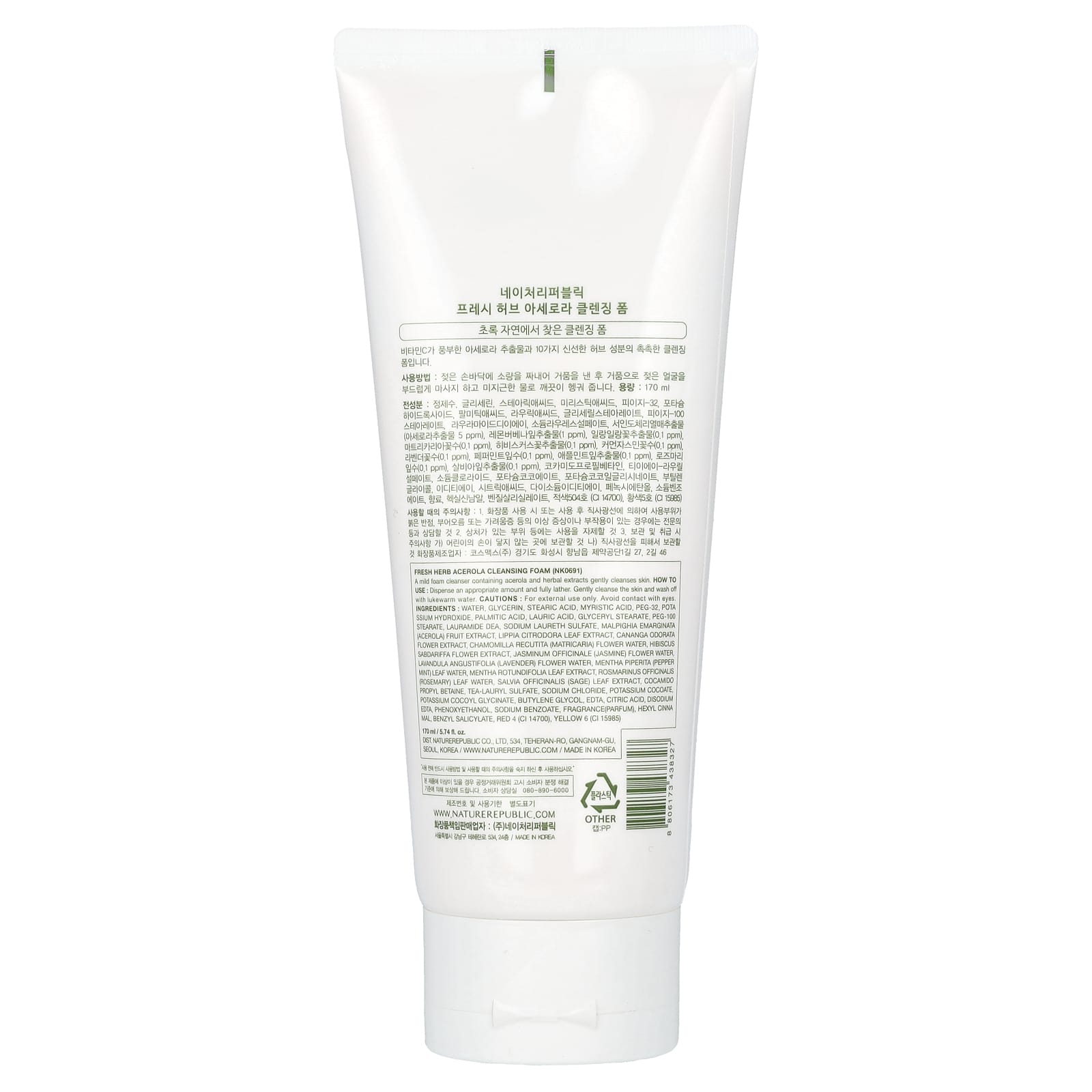Мягкая очищающая пенка с экстрактами ацеролы и трав бережно очищает кожу.