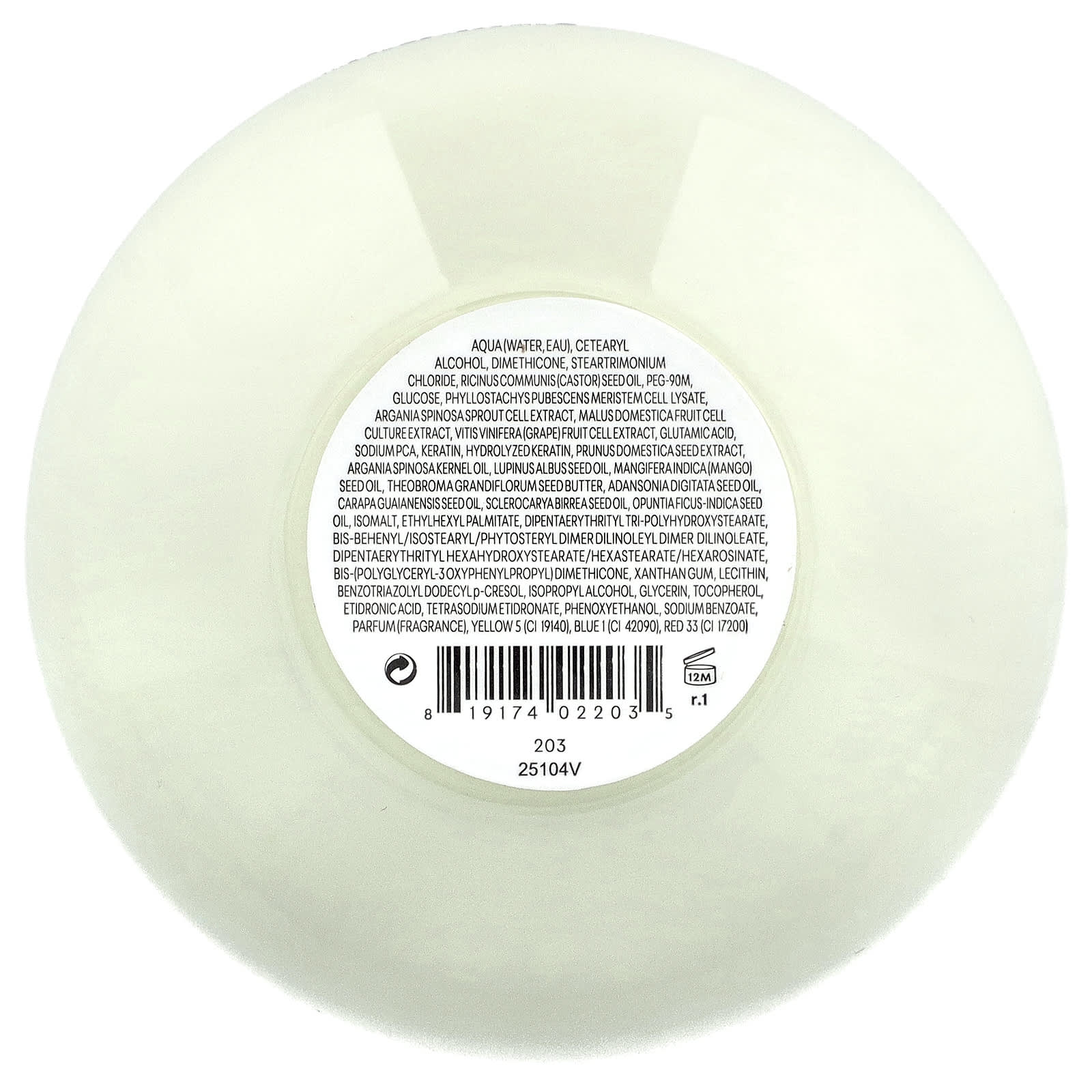 Вода (вода, eau), Цетеариловый спирт, диметикон, стеартримония хлорид, Масло семян Ricinus communis (касторового), ПЭГ-90м, глюкоза, лизат клеток меристемы (Phyllostachys pubescens), экстракт клеток ростков арганы (Argania spinosa), экстракт культуры клеток плодов яблони домашней (Malus domestica), экстракт клеток плодов винограда (Vitis vinifera), глутаминовая кислота натрияPCA, кератин, гидролизованный кератин, экстракт семян японской сливы (Prunus domestica), Масло косточек аргании спинозы, масло из семян люпина (Lupinus albus), масло из косточек манго (Mangifera indica), масло семян (Theobroma grandiflorum), масло из семян баобаба (Adansonia digitata), масло семян карапы (Carapa guayanensis), масло из семян склерокарии (Sclerocarya birrea), экстракт опунции индийской (Opuntia ficus-indica), изомальт, этилгексил пальмитат, дипентаэритритил три-полигидроксистеарат, бис-бегенил/изостеарил/фитостерил димер дилинолеил димер дилинолеат, дипентаэритритилгексагидроксистеарат/гексастеарат/гексарозинат, бис- (полиглицерил-3-оксифенилпропил) диметикон, Ксантановая камедь, лецитин, бензотриазолил додецилп-крезол, изопропилспирт, глицерин, Токоферол, этидроновая кислота, тетранатрия этидронат, феноксиэтанол, бензоат натрия, отдушка, краситель жёлтый 5 (CI 19140), краситель синий 1 (CI 42090), краситель красный 33 (CI 17200).