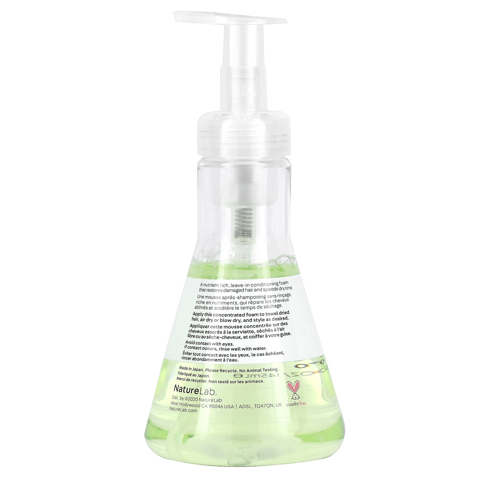 Богатая питательными веществами несмываемая пенка для ухода за волосами восстанавливает поврежденные волосы и ускоряет их сушку.