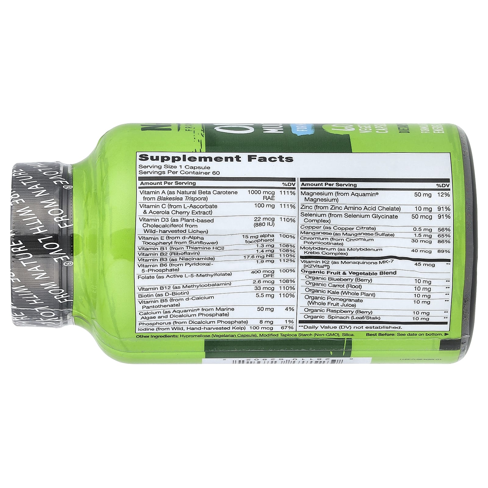Универсальная добавка: содержит 23 незаменимых витамина и минерала для поддержания мужского здоровья, а также органические фрукты и овощи для полноценного питания и антиоксидантной поддержки — всё в одной мультивитаминной добавке для мужчин для приёма один раз в день.
