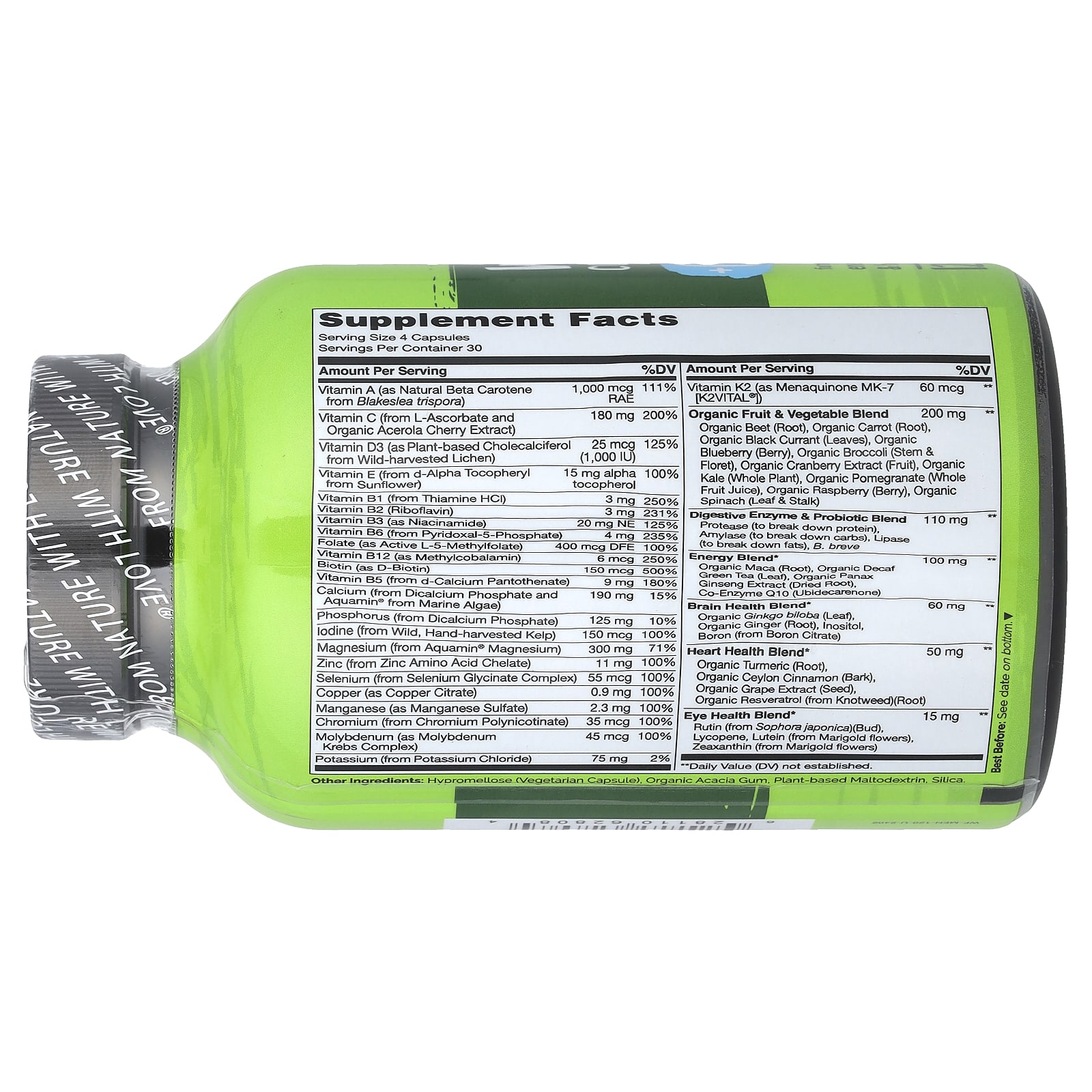 ЦЕЛЬНОПИЩЕВЫЕ ПИТАТЕЛЬНЫЕ ВЕЩЕСТВА. Наши мультивитамины изготовлены из настоящих органических фруктов и овощей и содержат питательные кофакторы, которые помогают организму распознавать и усваивать питательные вещества.