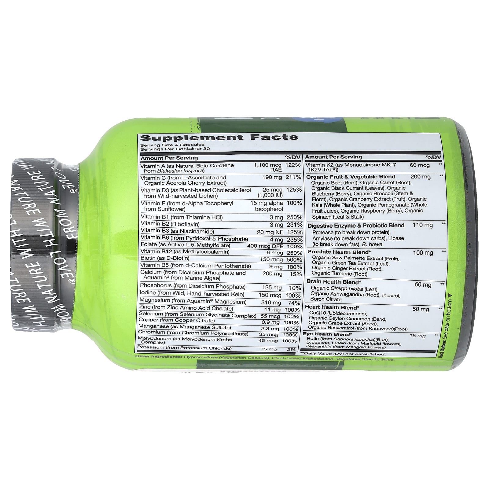 ИНГРЕДИЕНТЫ РАСТИТЕЛЬНОГО ПРОИСХОЖДЕНИЯ. Наши мультивитамины из цельных продуктов изготовлены из витаминов и минералов растительного происхождения, включая витамин D3 из лишайника, витамин E из подсолнечника, а также кальций и магний из морских водорослей.