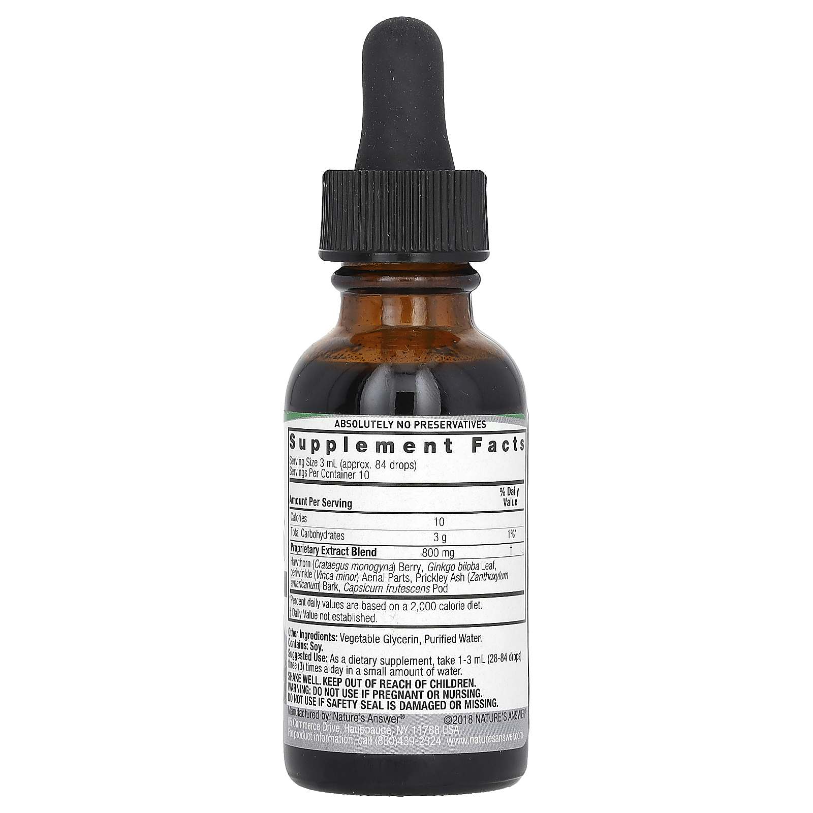 Жидкий экстракт трав без спирта Brainstorm содержит ягоды боярышника, гинкго билоба, барвинок, кору сычуаньского перца, стручковый перец, розмарин и готу колу. Это традиционное сочетание трав предлагается компанией Nature's Answer с 1972 года! В ее состав входят травы, известные своей поддержкой общего здоровья мозга и кровообращения. Гинкго — один из старейших видов деревьев, содержащий натуральные флавоноидные гликозиды. Гинкго является прекрасным примером «доктрины сигнатуры», признанной традиционными травниками, поскольку лист дерева гинкго напоминает полушарие мозга.