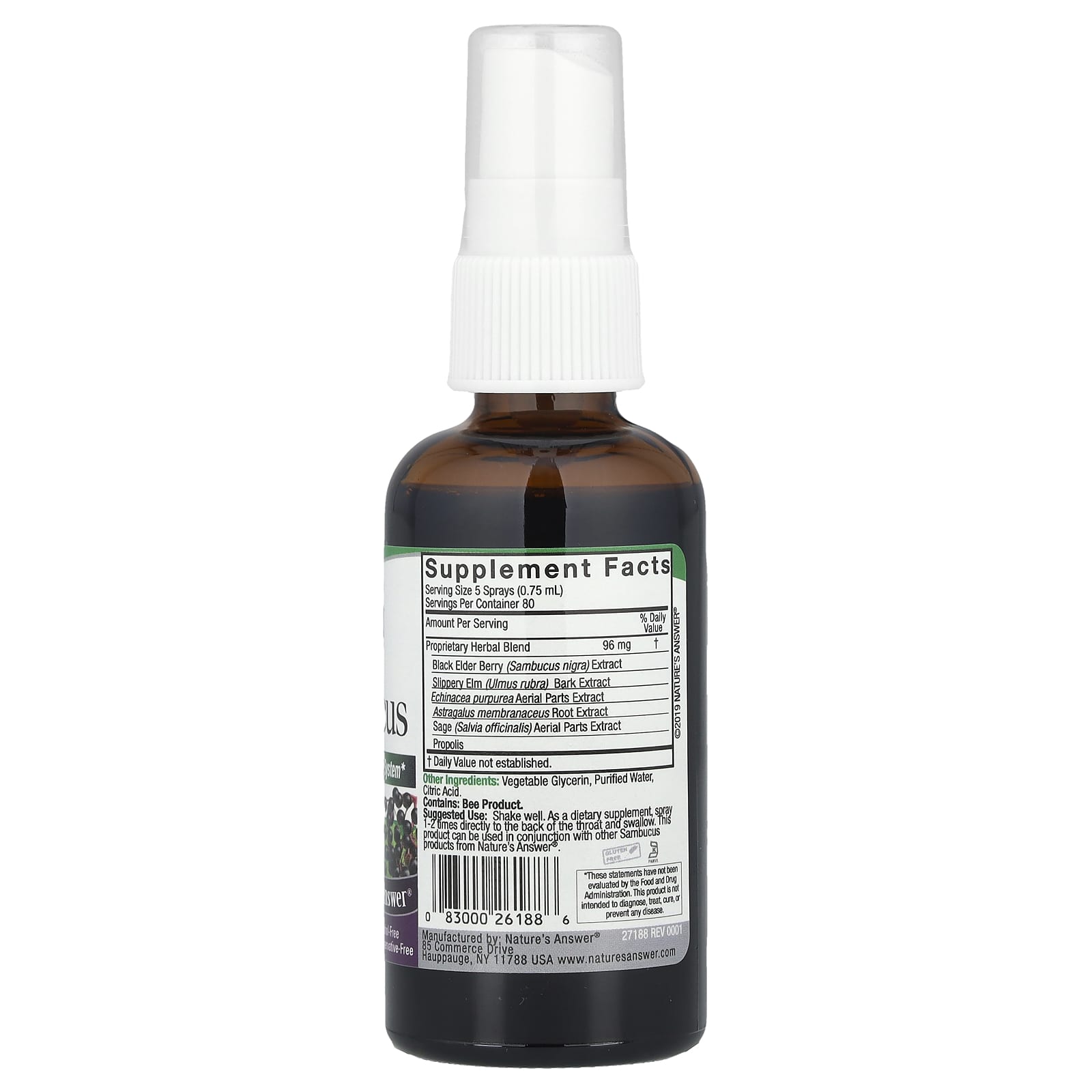 Хорошо встряхните перед использованием. В качестве пищевой добавки распылите 1–2 раза непосредственно на заднюю часть горла и проглотите. Этот продукт можно использовать вместе с другими продуктами Sambucus от Nature's Answer.