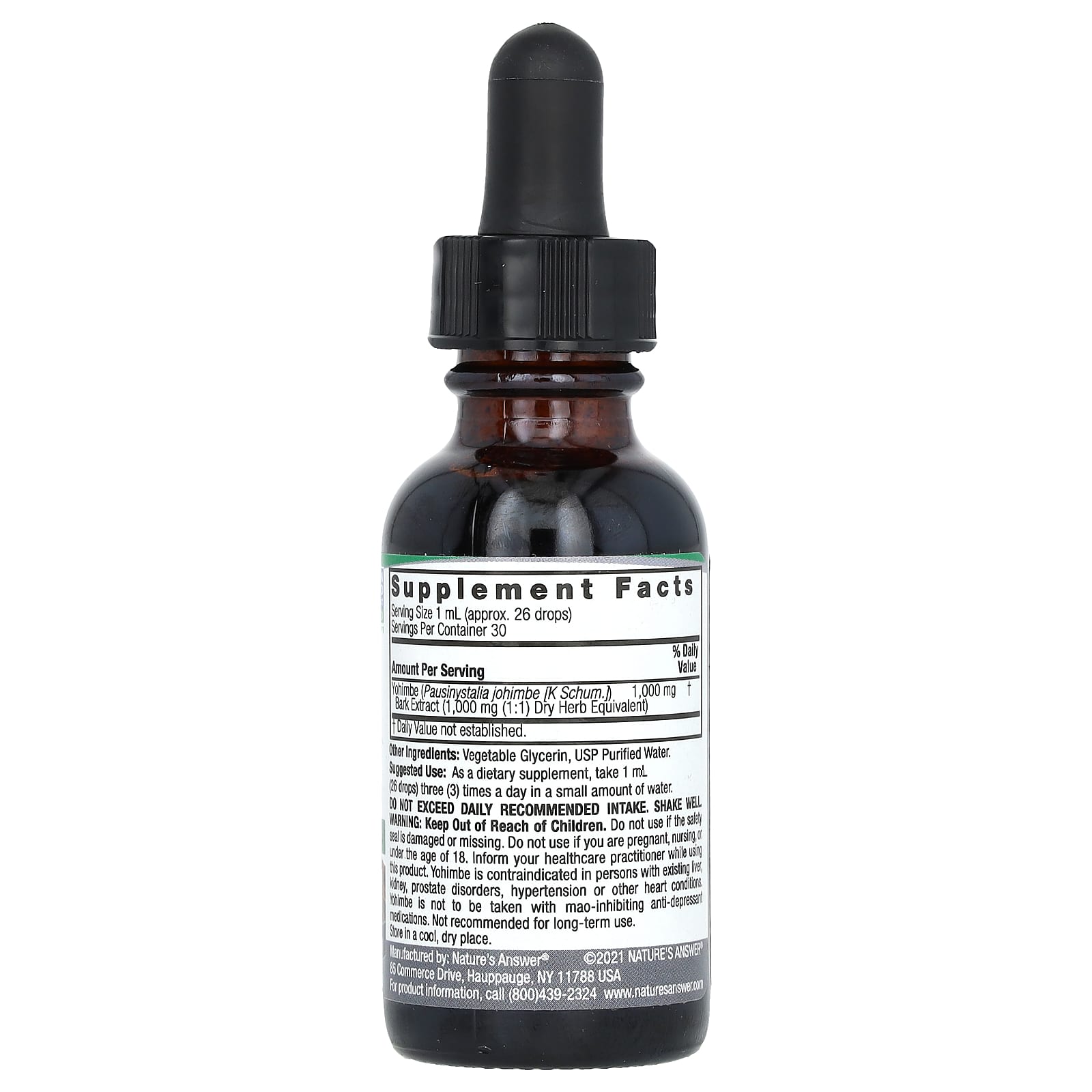 Жидкий экстракт коры йохимбе без спирта от Nature's Answer® — это концентрированный травяной экстракт, полученный из коры дерева йохимбе (Pausinystalia yohibe). 1000 мг сушеного растения на порцию (21 мл) предлагают потрясающие преимущества. Не содержащие спирта экстракты Nature's Answer® производятся из спирта, очищенной воды USP и натуральных экстрагентов для поддержания их естественного баланса.