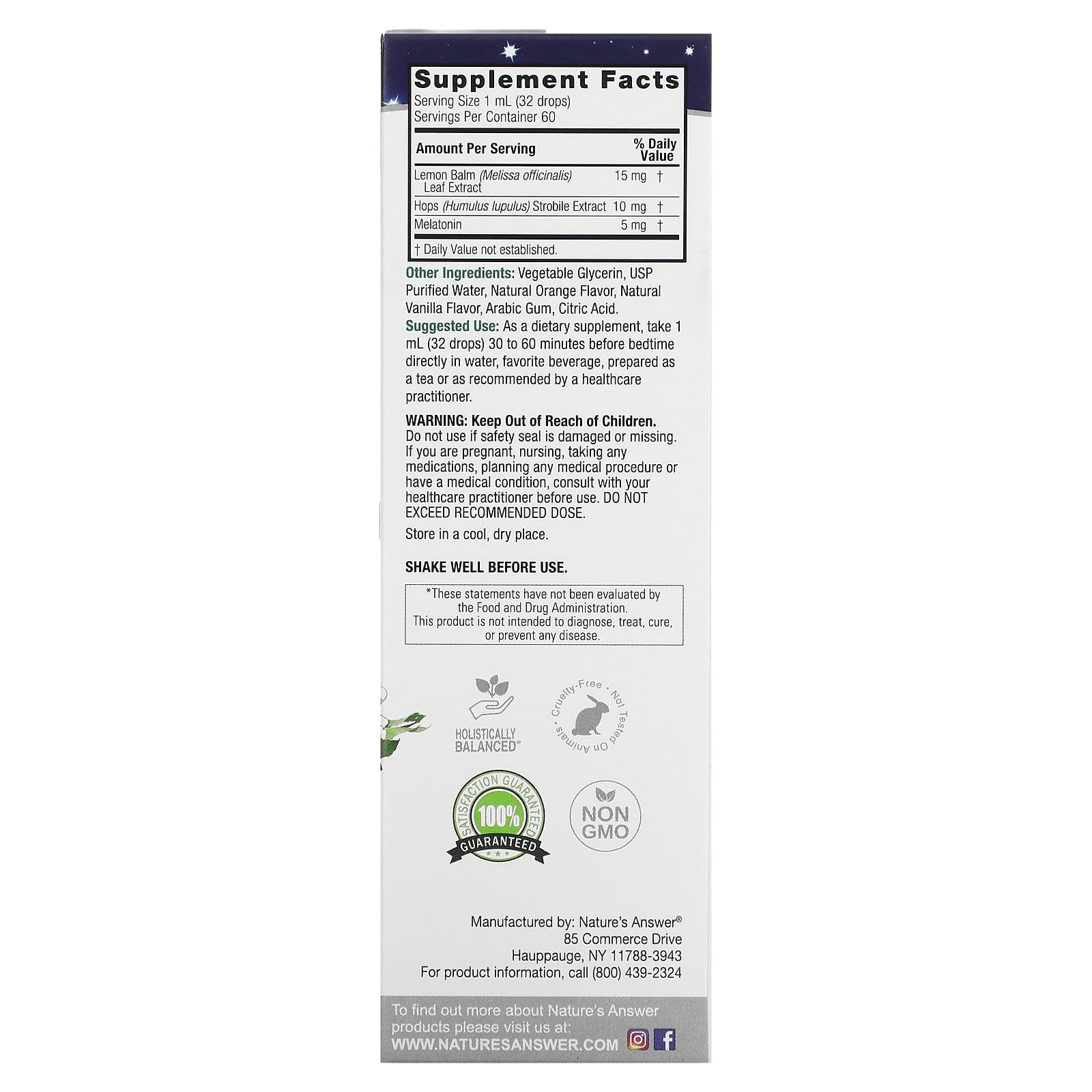 Жидкий мелатонин плюс от Nature's Answer содержит 5 миллиграммов мелатонина и травы для здорового и спокойного сна.