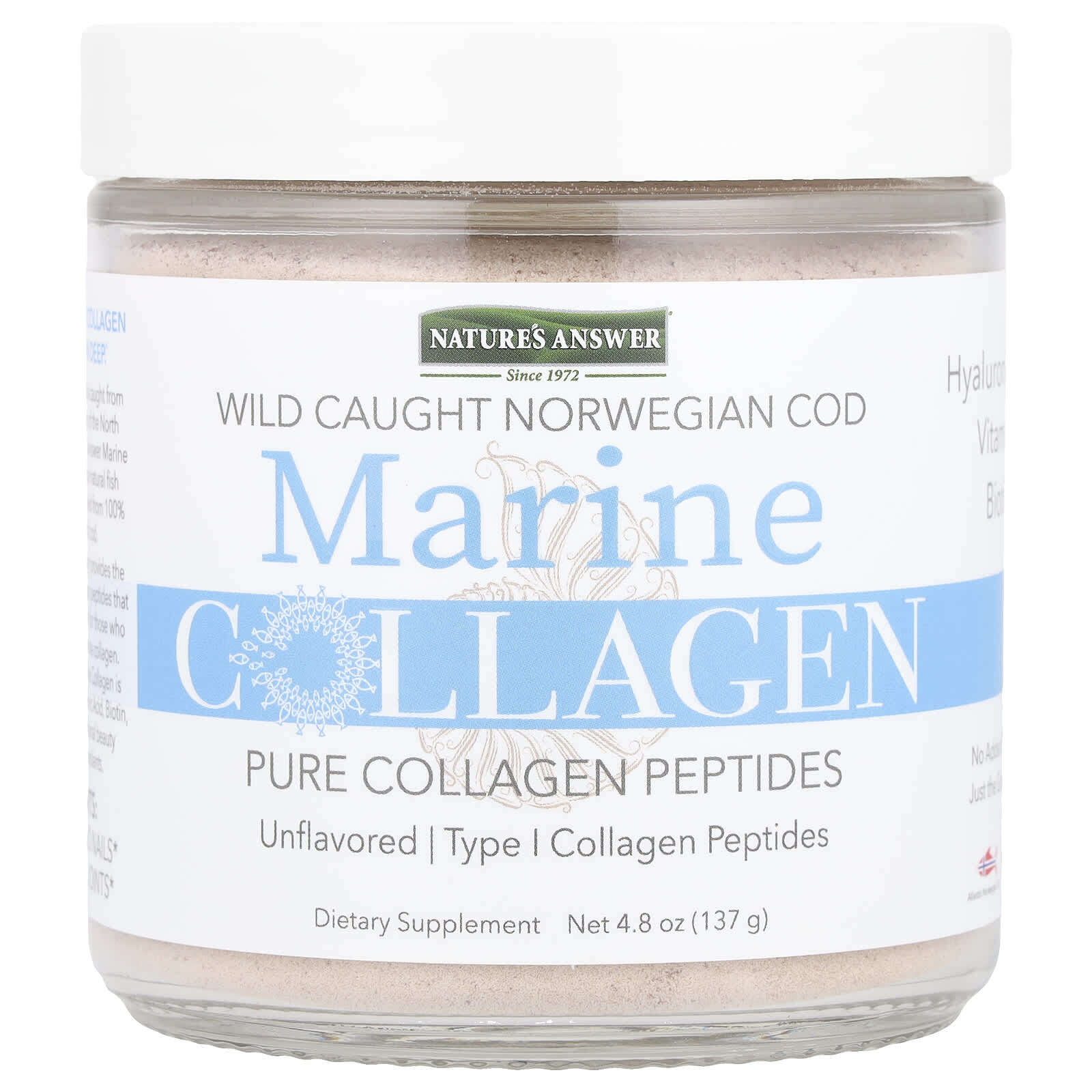Морской коллаген Nature's Answer, сертифицированный экологически безопасным способом и полученный из кристально чистых вод северной части Атлантического океана, содержит чистые пептиды натурального рыбьего коллагена, на 100% полученные из дикой норвежской трески.