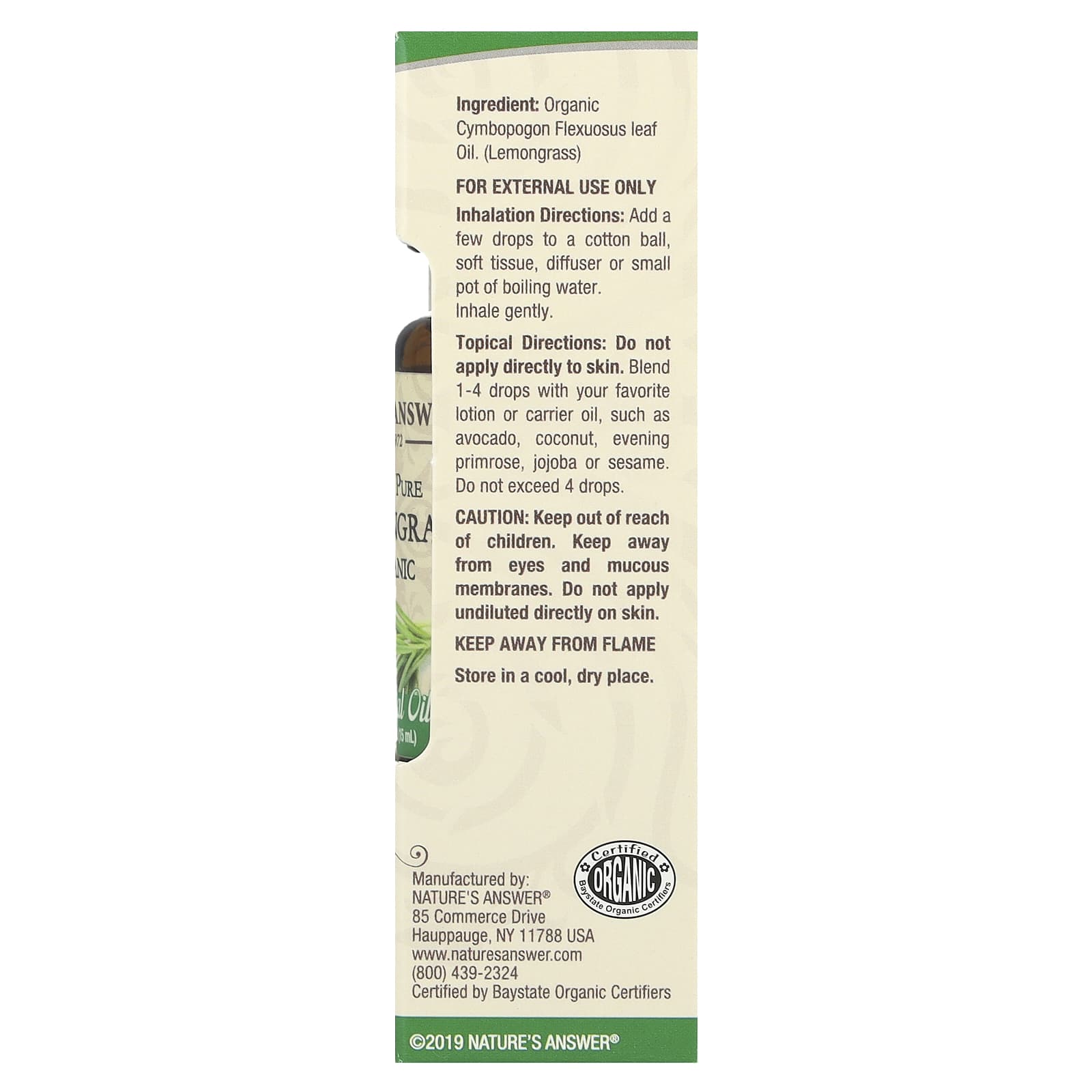 Будучи пионером в технологии растительных экстрактов с 1972 года, Natures Answer® поставляет на 100% чистые сертифицированные органические эфирные масла.