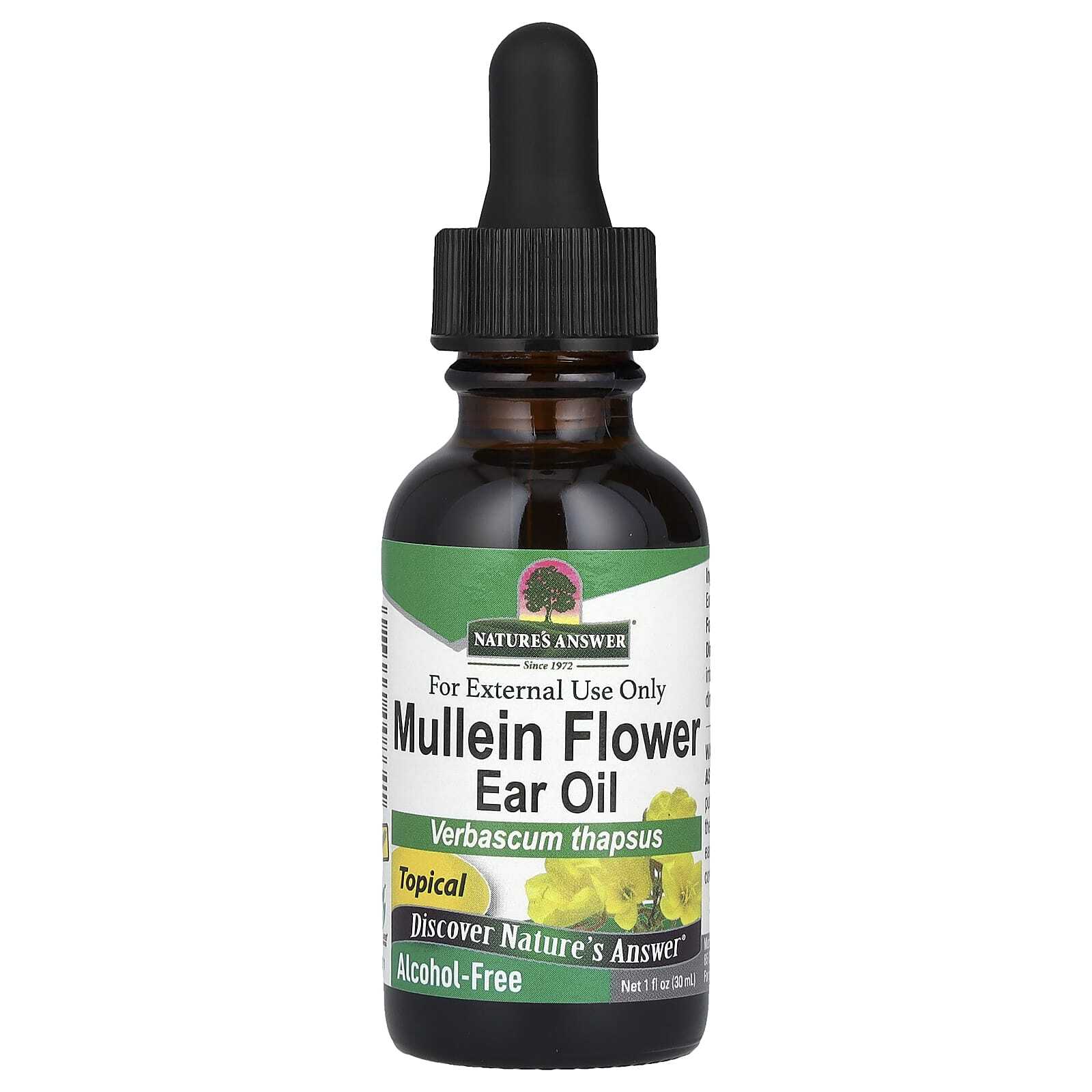 Коровяк (Verbascum thapsus) - это дикорастущее растение, произрастающее в Европе, Азии и Средиземноморье, оно широко распространено на полях и в пустырях по всей территории США. Растения различаются по 2 года. В первый год растение остается близко к земле, с большими листьями, образующими густую розетку. На второй год растение выпускает высокий колос с ярко-желтыми цветками. Масло из цветков коровяка из ушей от Nature's Answer изготовлено из ярких цветов, собранных в самый подходящий момент.