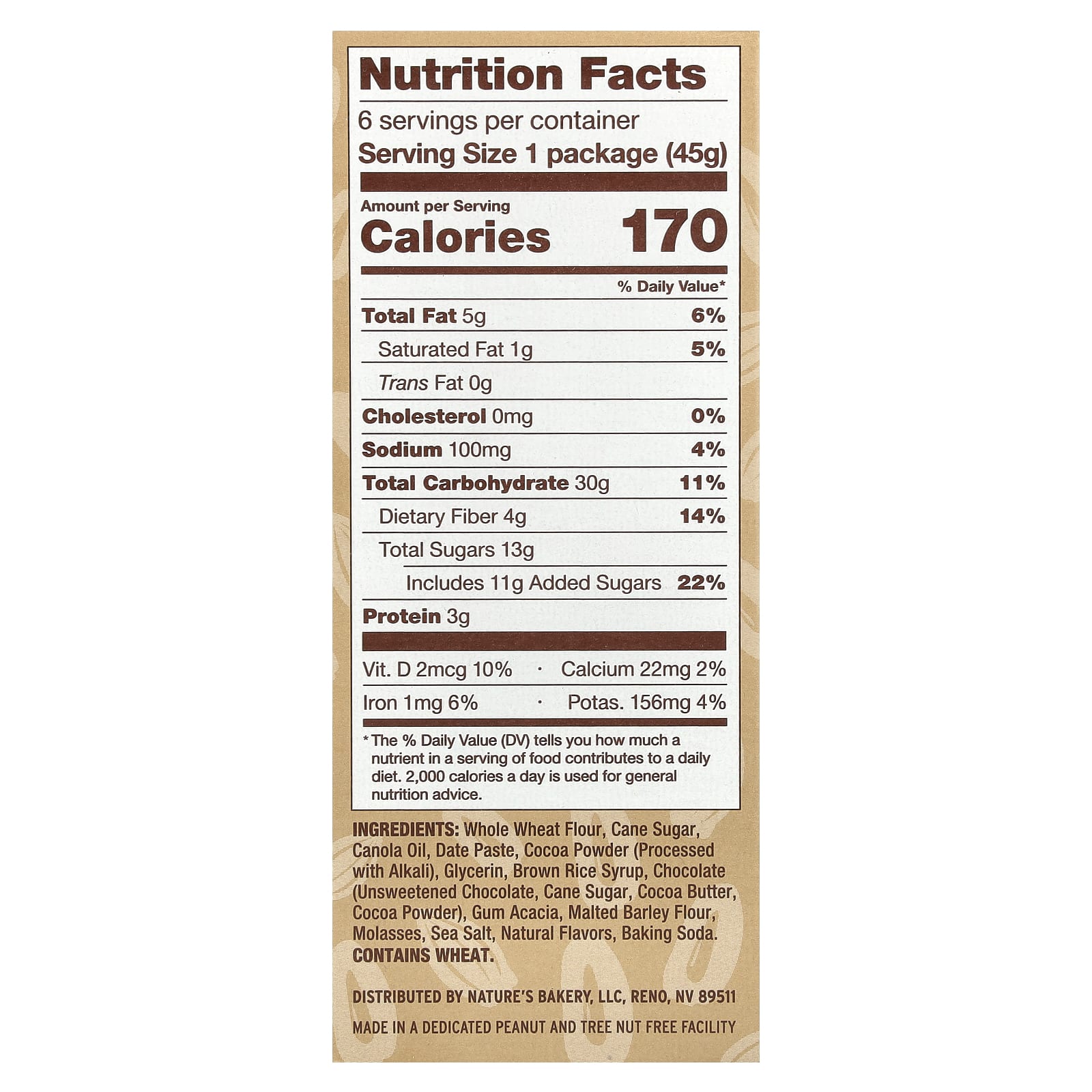 Цельнозерновая мука, тростниковый сахар, рапсовое масло, паста из фиников, какао-порошок (обработанный щелочью), глицерин, сироп из бурого риса, шоколад (несладкий шоколад, тростниковый сахар, какао-масло, какао-порошок), аравийская камедь, солодовая ячменная мука, патока, морская соль, натуральные ароматизаторы, пищевая сода.