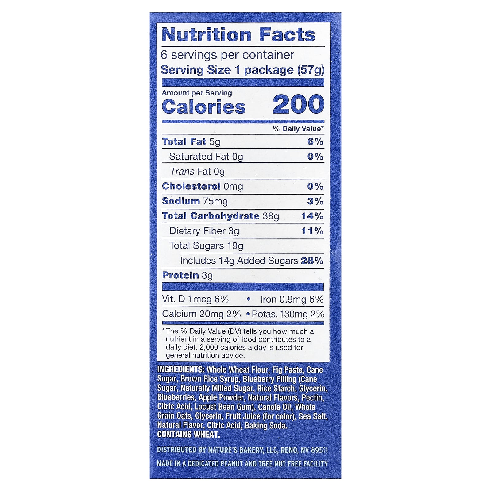 Цельнозерновая пшеничная мука, инжирная паста, тростниковый сахар, сироп из бурого риса, голубическая начинка (тростниковый сахар, натуральный измельченный сахар, рисовый крахмал, глицерин, голубика, порошок из яблока, натуральные ароматизаторы, пектин, лимонная кислота, камедь рожкового дерева), рапсовое масло, цельнозерновой овес, глицерин, свекольный сок (краситель), морская соль, натуральный ароматизатор, лимонная кислота, пищевая сода.