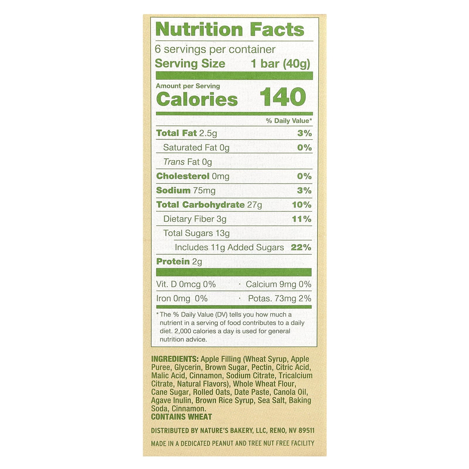 Яблочная начинка (пшеничный сироп, яблочное пюре, глицерин, коричневый сахар, пектин, лимонная кислота, яблочная кислота, корица, цитрат натрия, цитрат трикальция, натуральные ароматизаторы), цельнозерновая пшеничная мука, тростниковый сахар, плющеная овсянка, паста из фиников, рапсовое масло, инулин агавы, сироп из бурого риса, морская соль, пищевая сода, корица.