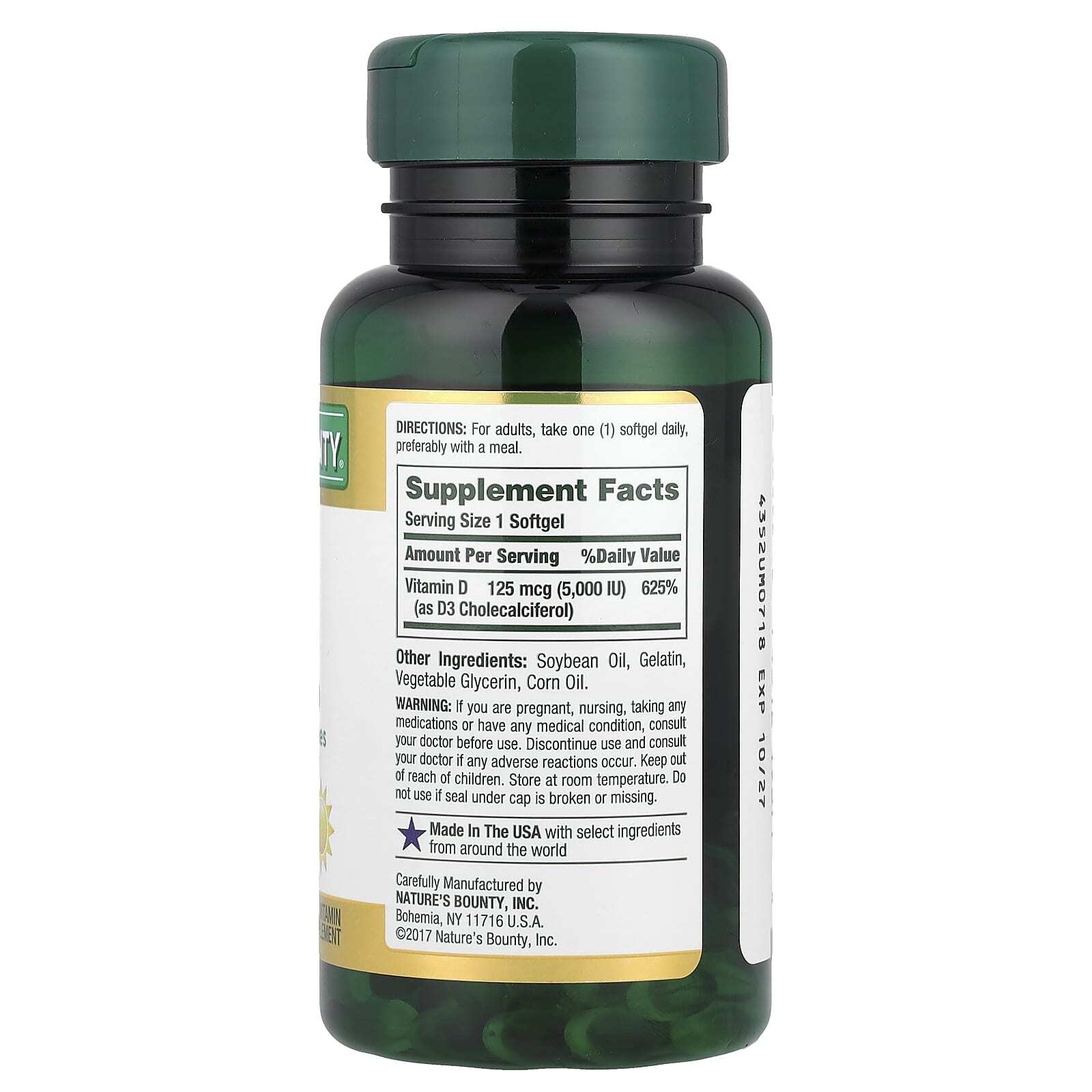Витамин D (в виде холекальциферола D3) | 125 мкг (5000 МЕ) | 625% |