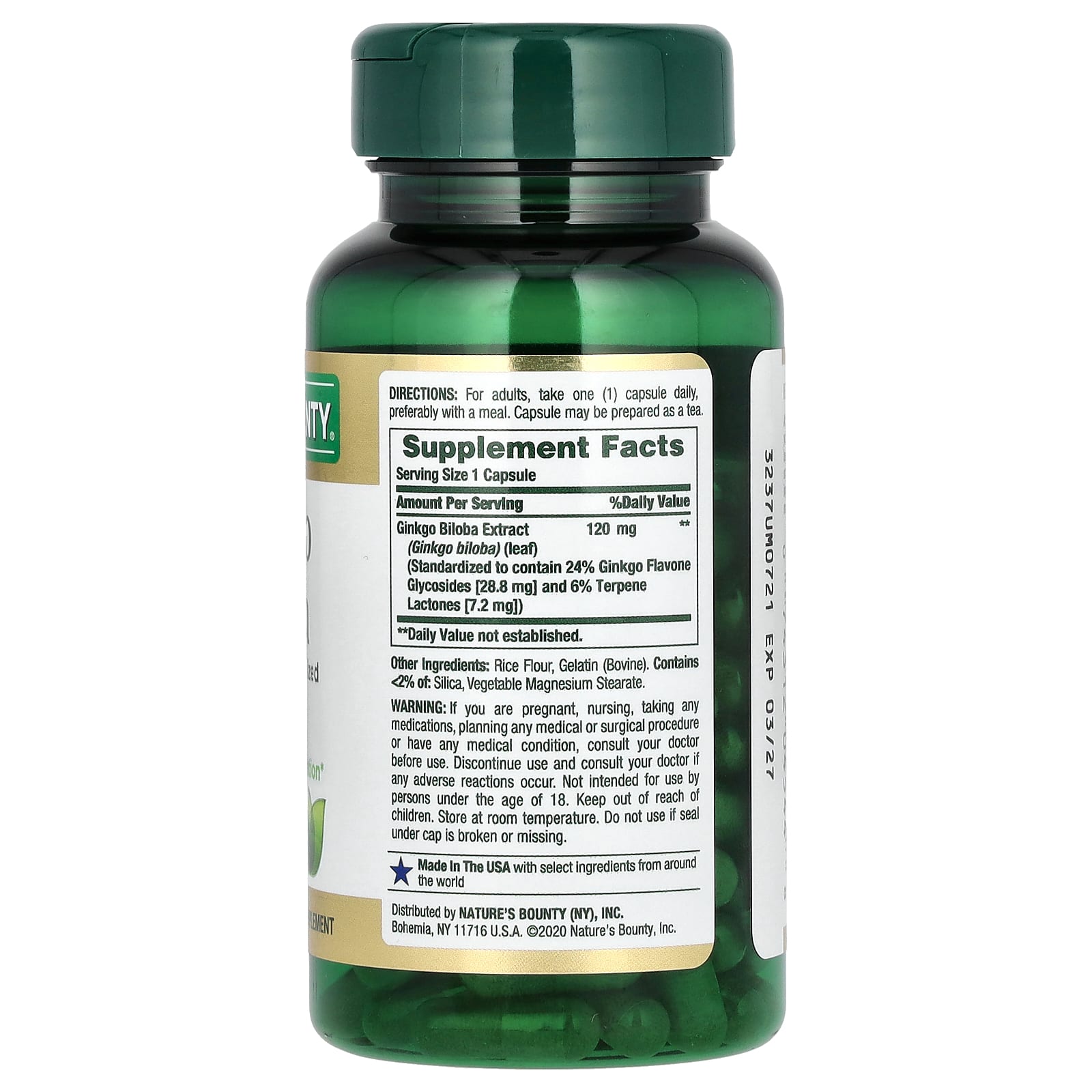 Nature's Bounty, Гинкго билоба, 120 мг, 100 капсул