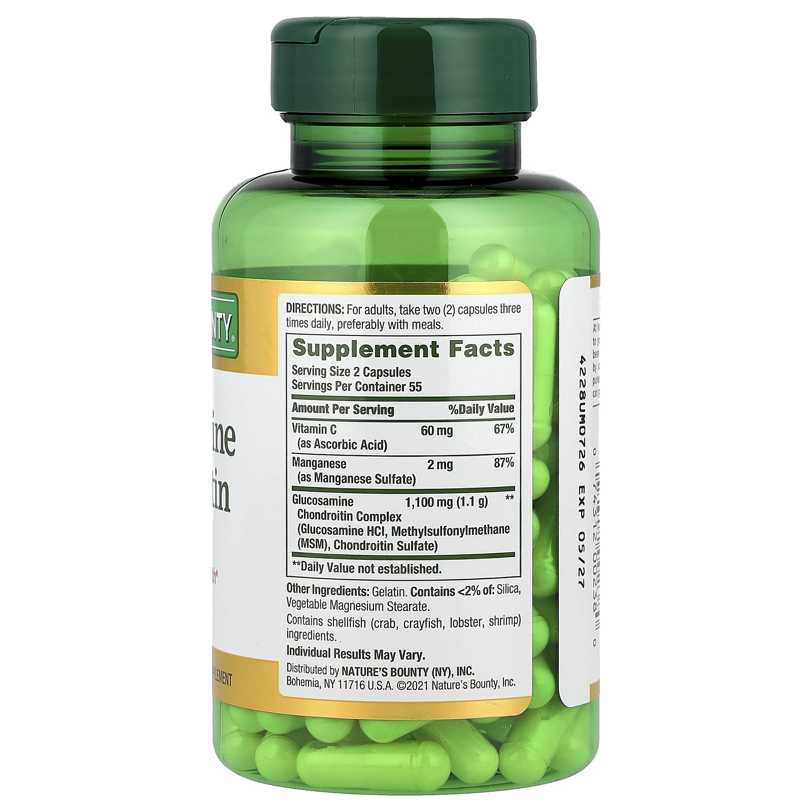 | Глюкозамин-хондроитиновый комплекс (глюкозамин гидрохлорид, метилсульфонилметан (МСМ), хондроитинсульфат) | 1100 мг (1,1 г) | ** |