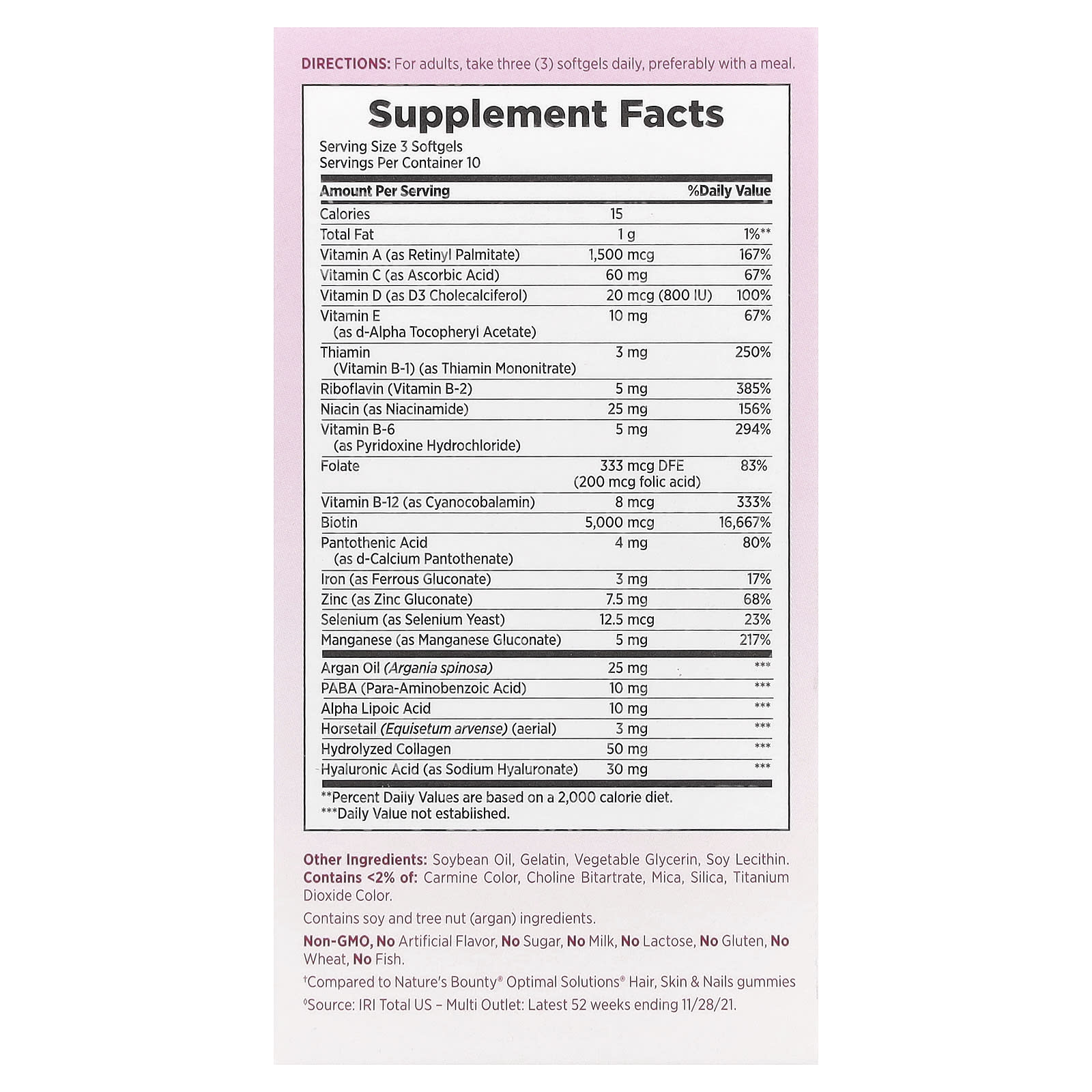 † По сравнению с жевательными таблетками для волос, кожи и ногтей Nature's Bounty® Optimal Solutions®