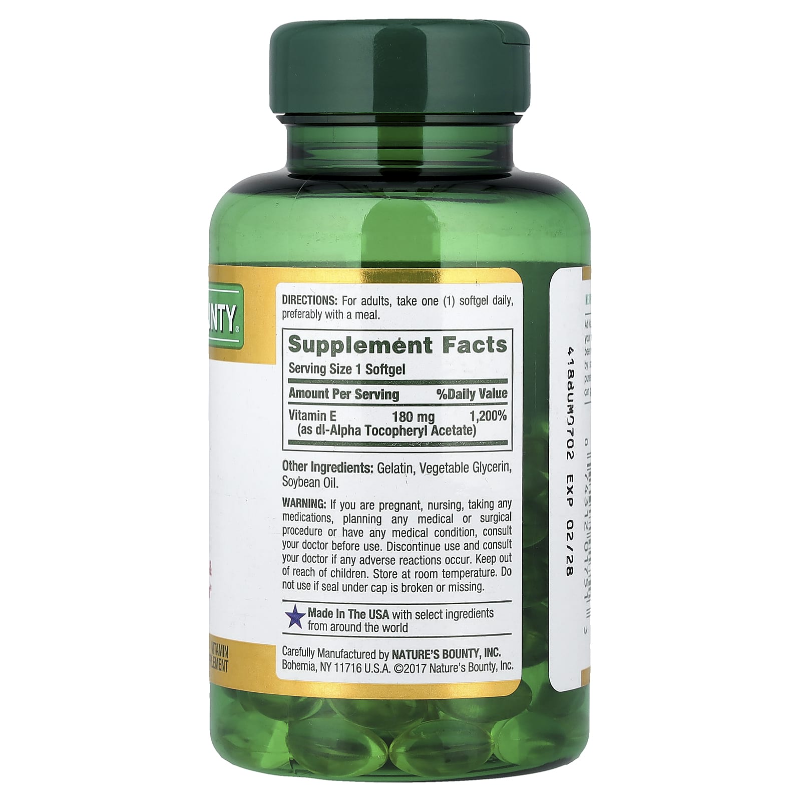 | Витамин E (в виде dl-альфа токоферил ацетата) | 180 мг | 1200% |