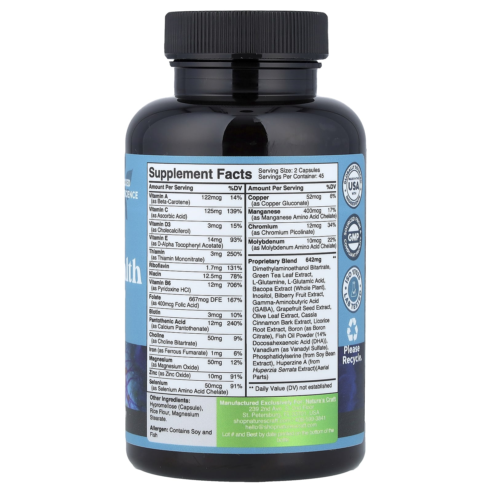 Лучшее из древнего мира в сочетании с научными достижениями. Natures Craft предлагает добавку для концентрации, памяти и ясности ума, которая содержит целенаправленную и специально подобранную комбинацию ноотропных веществ, или «усилителей мозга». Специально выбранные экстракты, травы и вещества работают вместе, чтобы улучшить внимание, творческие способности, гибкость, концентрацию, скорость, память и ясность сознания. Экстракт зеленого чая. Традиционная добавка для умственной деятельности. Естественным образом способствует улучшению работы мозга. Гуперзин А: повышает бдительность и улучшает память; полученный из елового мха. Бакопа Монье. Содержит бакозиды, которые улучшают когнитивные функции и память. L-глютамин: Незаменимая аминокислота, которая производит белок и улучшает память. Natures Craft уделяет особое внимание комплексным преимуществам всех этих натуральных ноотропных стимуляторов мозга и надеется, что вы получите максимальные преимущества от ежедневной рекомендуемой дозы.