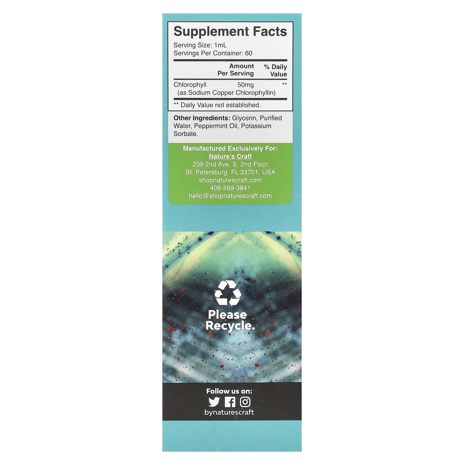 Поднимите настроение с помощью наших капель с жидким хлорофиллом. Этот незаменимый пигмент известен своей огромной пользой для здоровья и оживляет ваш организм изнутри. Погрузитесь во все, что предлагают наши капли, включая повышение энергии, улучшенную детоксикацию и улучшение пищеварения. Почувствуйте, как внутреннее здоровье отражает внешнее сияние с помощью Nature's Craft.