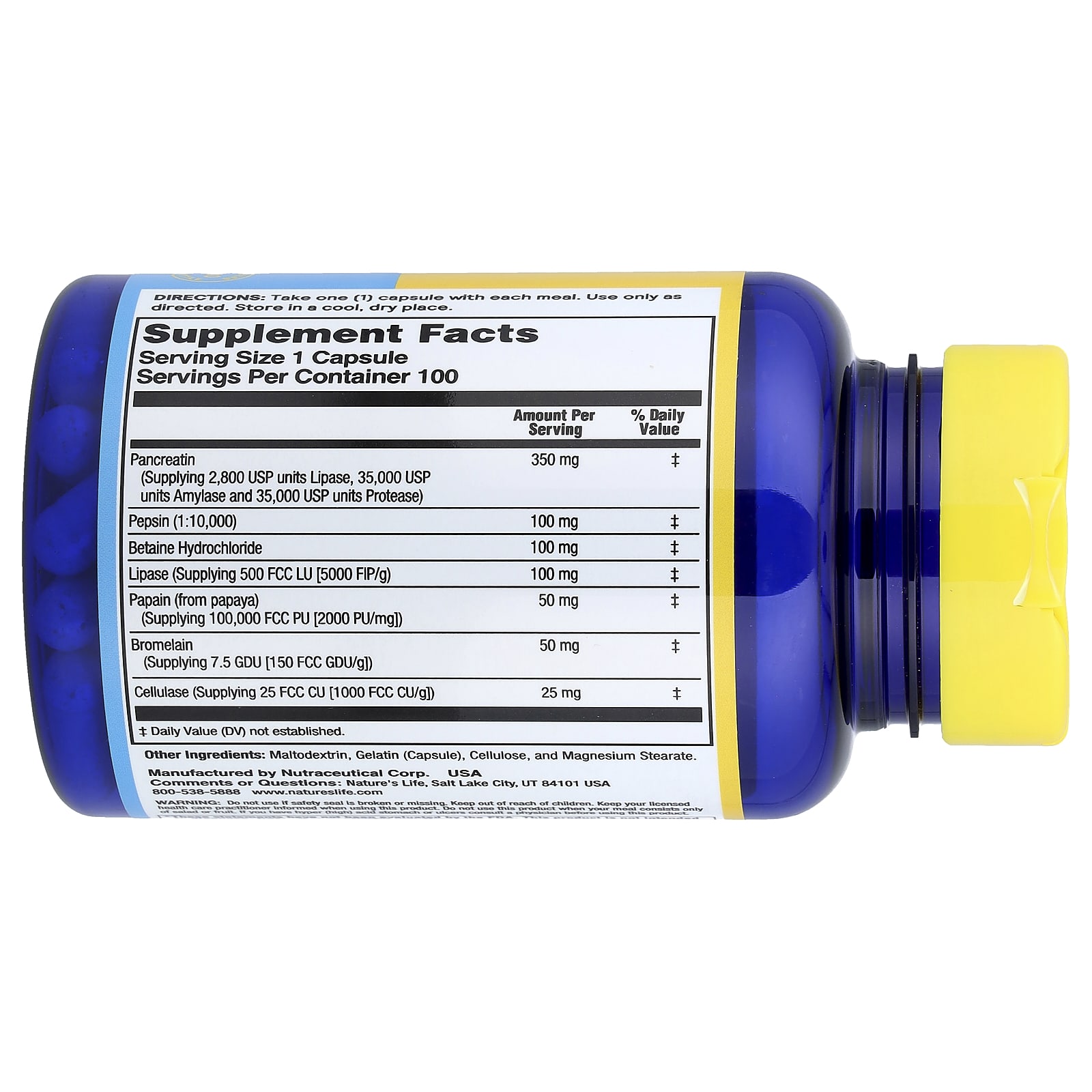 Описание. Enzyme Aid™ от Nature's Life® — это комплексная смесь ферментов, поддерживающих здоровое пищеварение. Содержит панкреатин, пепсин, бетаин, липазу, папаин и бромелаин, которые способствуют расщеплению белков, жиров и углеводов.