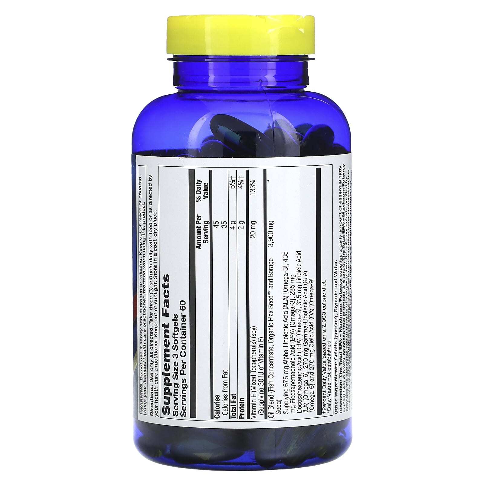 Смесь масел (рыбий концентрат, органические семена льна** и семена бурачника) Содержит 675 мг альфа-линоленовой кислоты (АЛК) [омега-3], 435 мг эйкозапентаеновой кислоты (ЭПК) [омега-3], 285 мг докозагексаеновой кислоты (ДГК) [омега-3], 315 мг линолевой кислоты (ЛК) [омега-3] омега-6], 270 мг гамма-линоленовой кислоты (ГЛК) [омега-6] и 270 мг олеиновой кислоты (ОА) [омега-9] | 3900 мг | * |