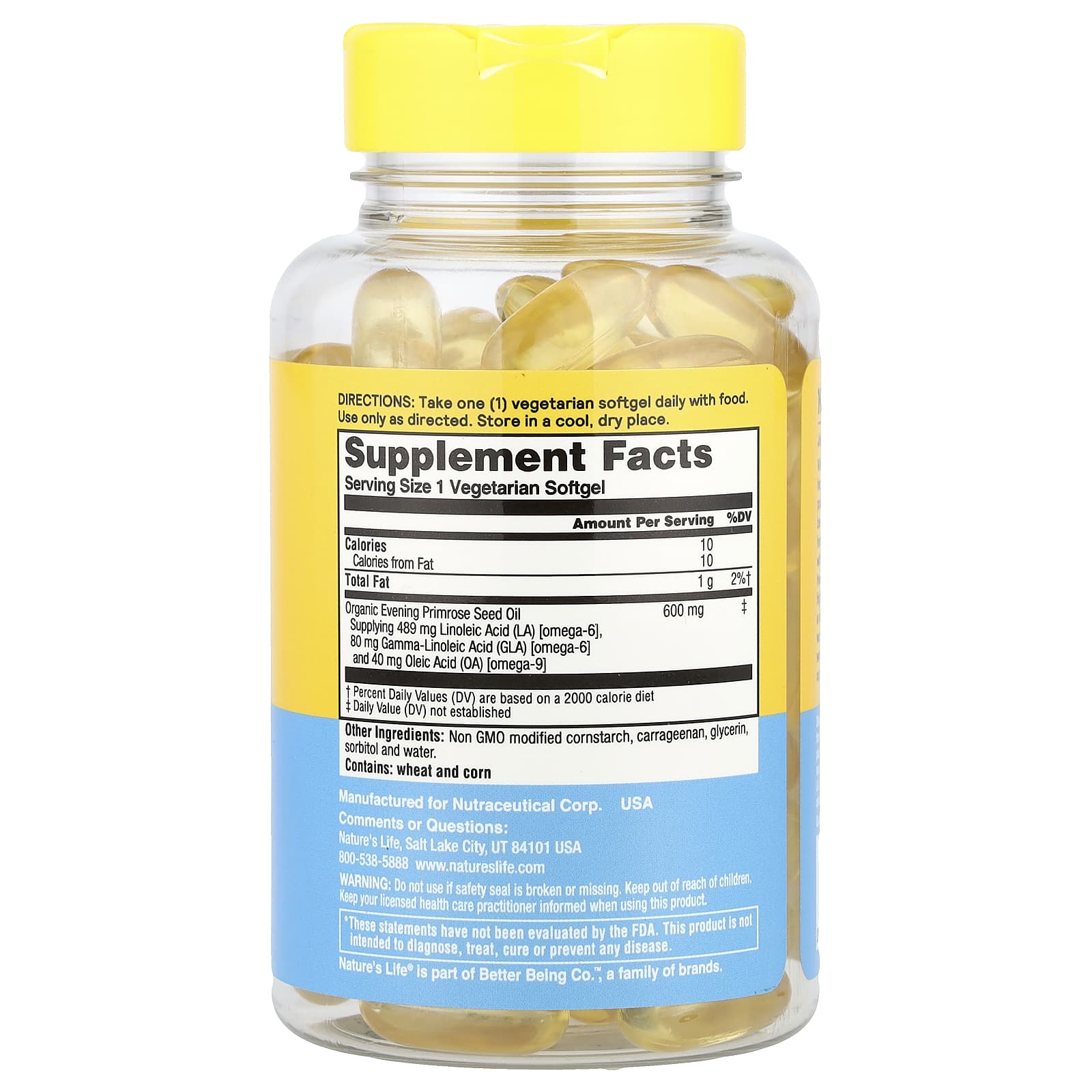 | Масло из семян органического первоцвета вечернего Содержит 489 мг линолевой кислоты (ЛК) [омега-6], 80 мг гамма-линоленовой кислоты (ГЛК) [омега-6] и 40 мг олеиновой кислоты (ОА) [омега-9] | 600 мг | ‡ |