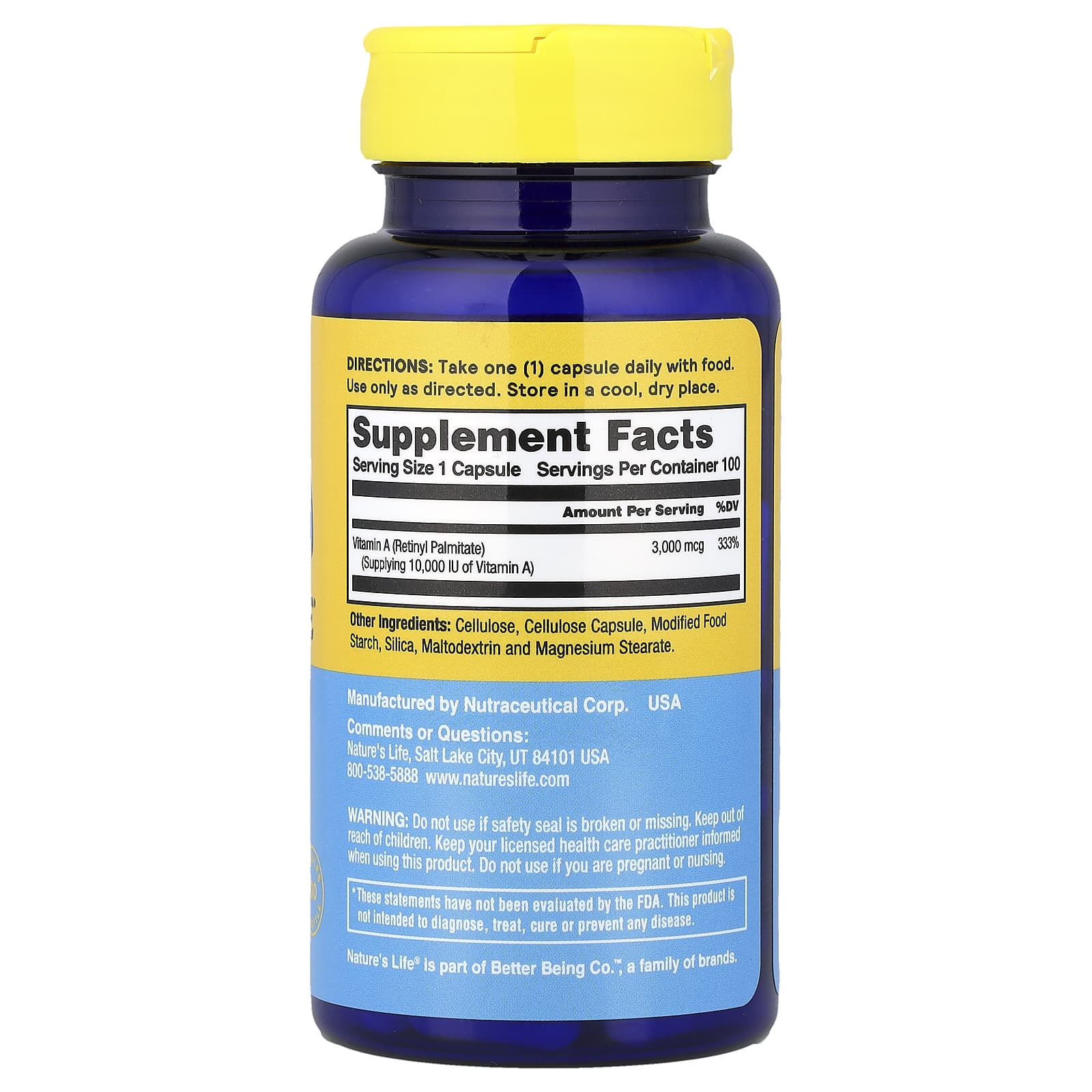 Описание. Витамин A от Nature's Life создан на основе ретинилпальмитата. Витамин А играет важную роль в здоровье зрения и иммунной функции.