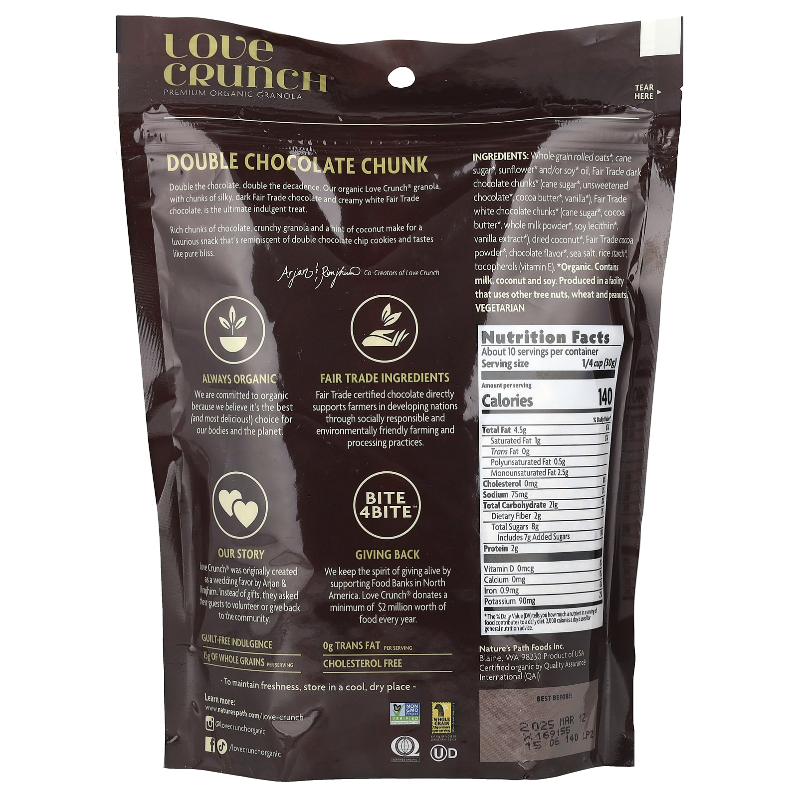 В два раза больше шоколада, в два раза больше упадка. Наша органическая гранола Love Crunch® с кусочками шелковистого темного шоколада Fair Trade и кремового белого шоколада Fair Trade - это непревзойденное лакомство.
