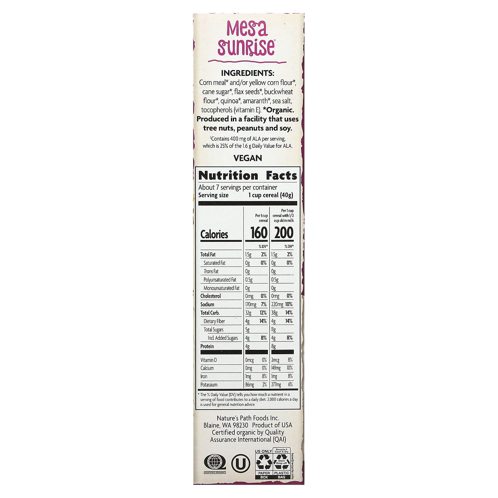 Хлопья Mesa Sunrise — это деликатесная смесь органических кукурузы, киноа, гречихи, амаранта и льна для суперхрустящего и вкусного завтрака, который вы сразу полюбите. А с такими простыми и полезными ингредиентами вы убедитесь, насколько полезным может быть продукт без глютена.