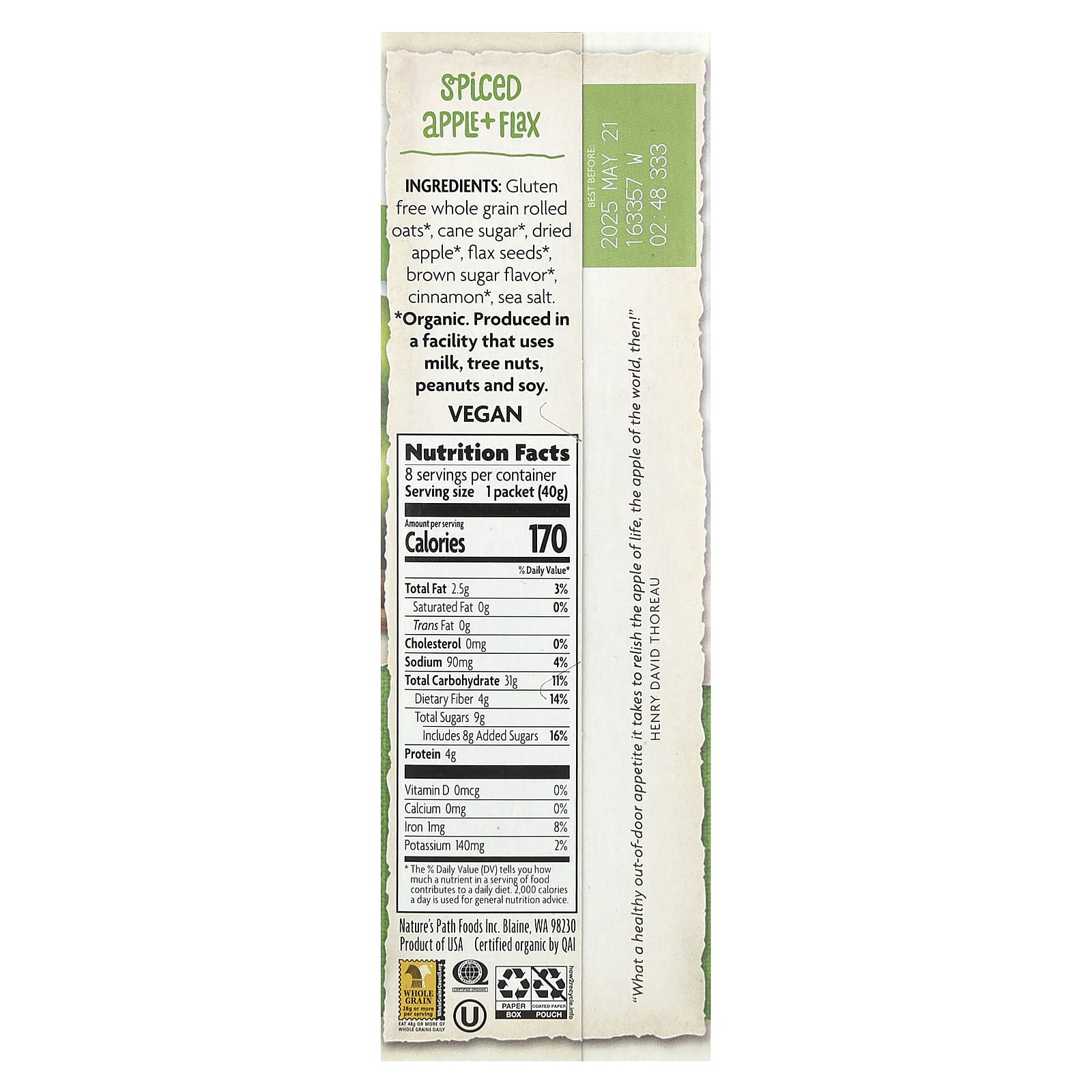 Вы никогда не должны жертвовать вкусом из-за своей безглютеновой диеты, поэтому мы объединили сушеные яблоки, овес без глютена, семена льна и корицу в этой овсянке с яблоком и льном со специями, чтобы дать вам по-настоящему вкусный завтрак. Эти овсяные хлопья быстрого приготовления упакованы в одноразовые пакетики, что позволяет легко готовить еду в горячем или холодном виде.