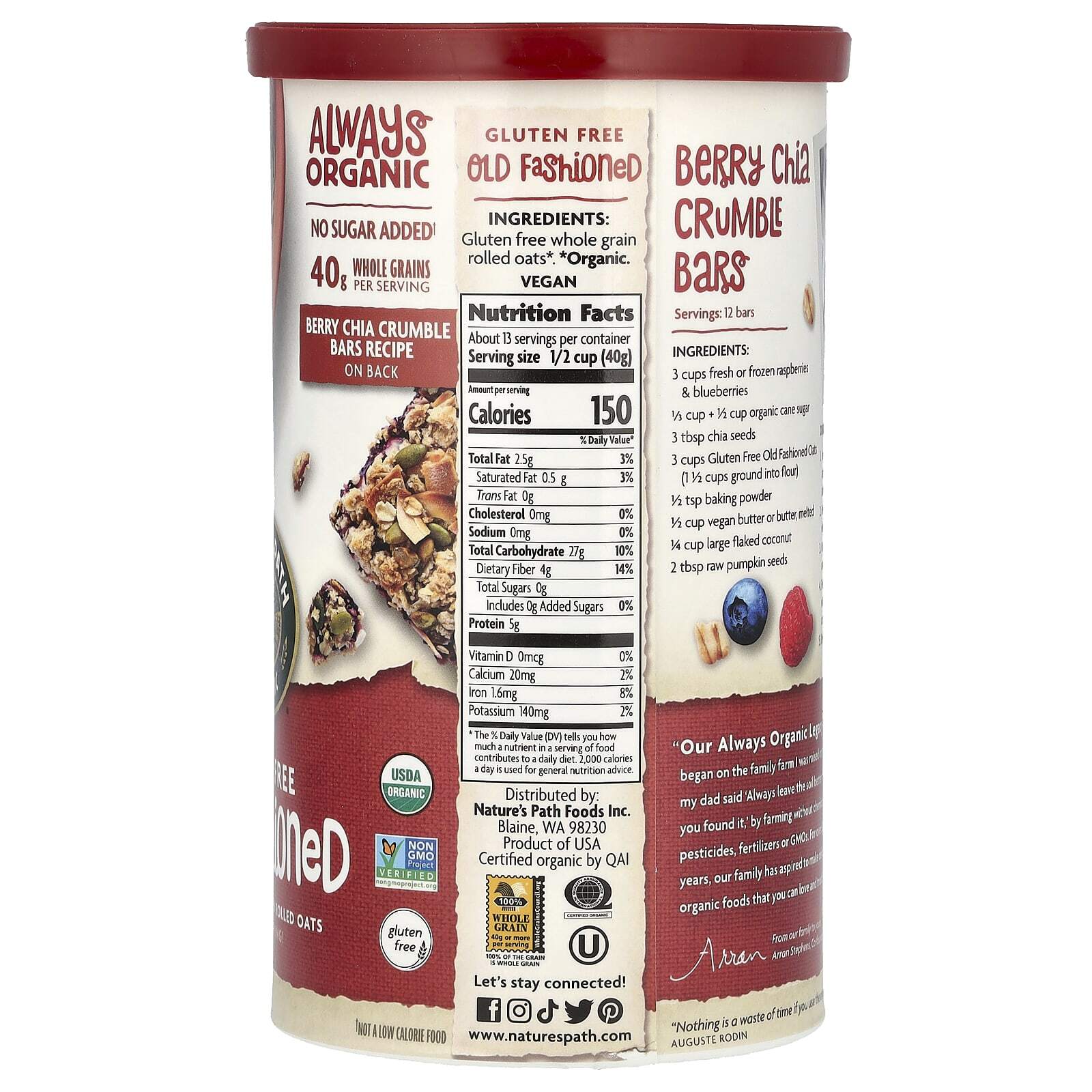 «Наше наследие« Всегда органическое »началось на семейной ферме, где я вырос, где мой отец сказал:« Всегда оставляйте почву лучше, чем вы ее нашли », занимаясь сельским хозяйством без химических пестицидов, удобрений и ГМО. Более 30 лет наша семья стремится производить вкусные органические продукты, которые можно любить и которым можно доверять ».